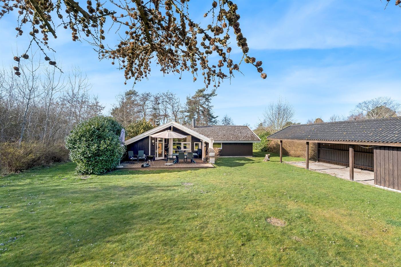 Die Ferienunterkunft liegt auf einem 1000 m² großen Naturgrundstück. Die Entfernung zum Meer beträgt 300 m. Die nächste Einkaufsmöglichkeit liegt 4000 m entfernt. In einem Abstand von 10000 m gibt es einen Golfplatz. Es steht ein offenes Terrassenareal zur Verfügung. Außerdem gibt es überdachte Terrasse. Geräteraum. Sandkasten. Kinderspielhaus. Die Entfernung zu einem Spielplatz beträgt 2500 m.Lagerfeuerstelle.An Sommerabenden sorgt der Außenkamin für eine gemütliche Atmosphäre. Es steht ein Grill zur Verfügung. Es steht ein Carport zur Verfügung. Parkplatz auf dem Grundstück.