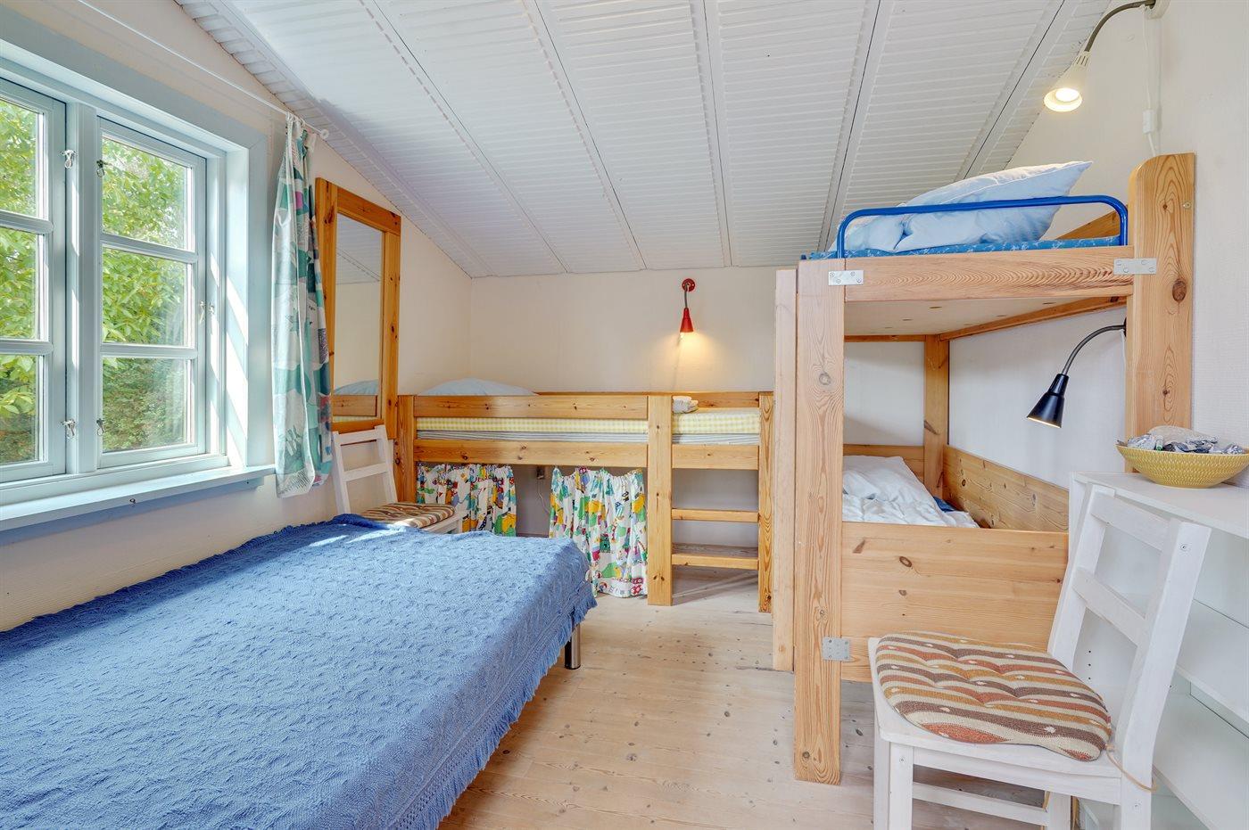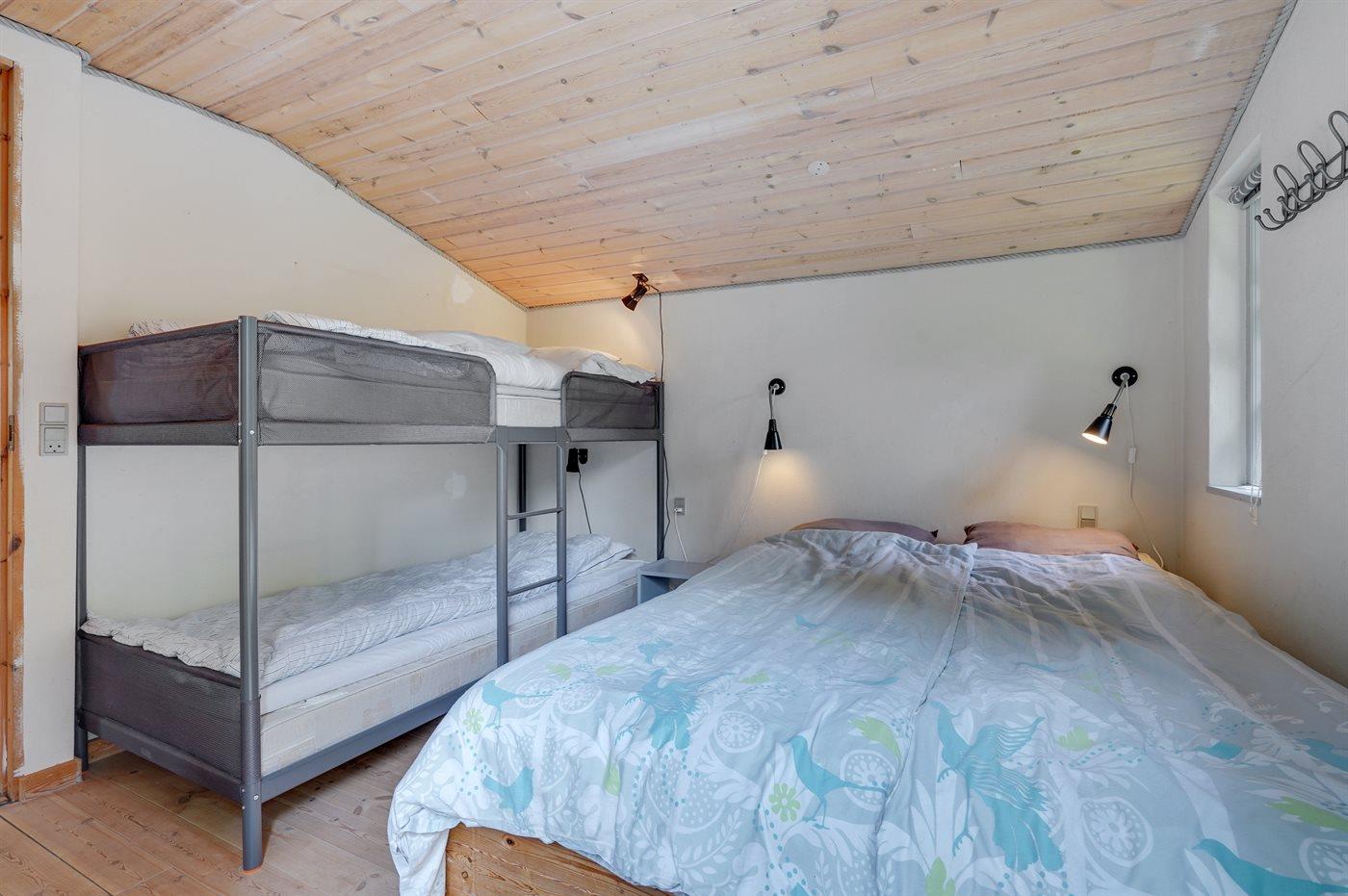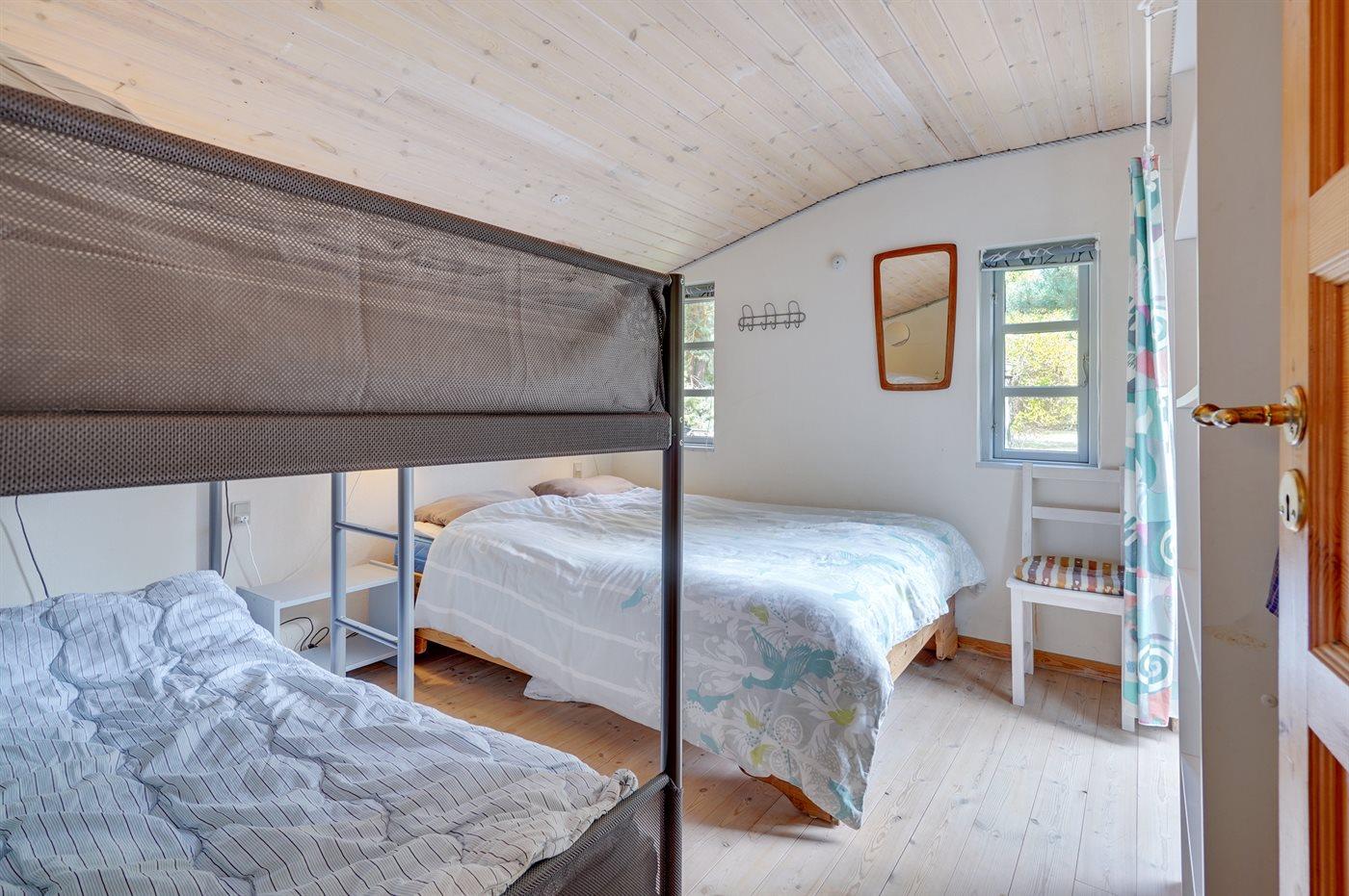 Die Schlafplätze verteilen sich auf 2 Schlafräume. 2 Schlafplätze in einem Doppelbett.1 Schlafplatz in einem Einzelbett. 3 Schlafplätze in Etagenbetten.
