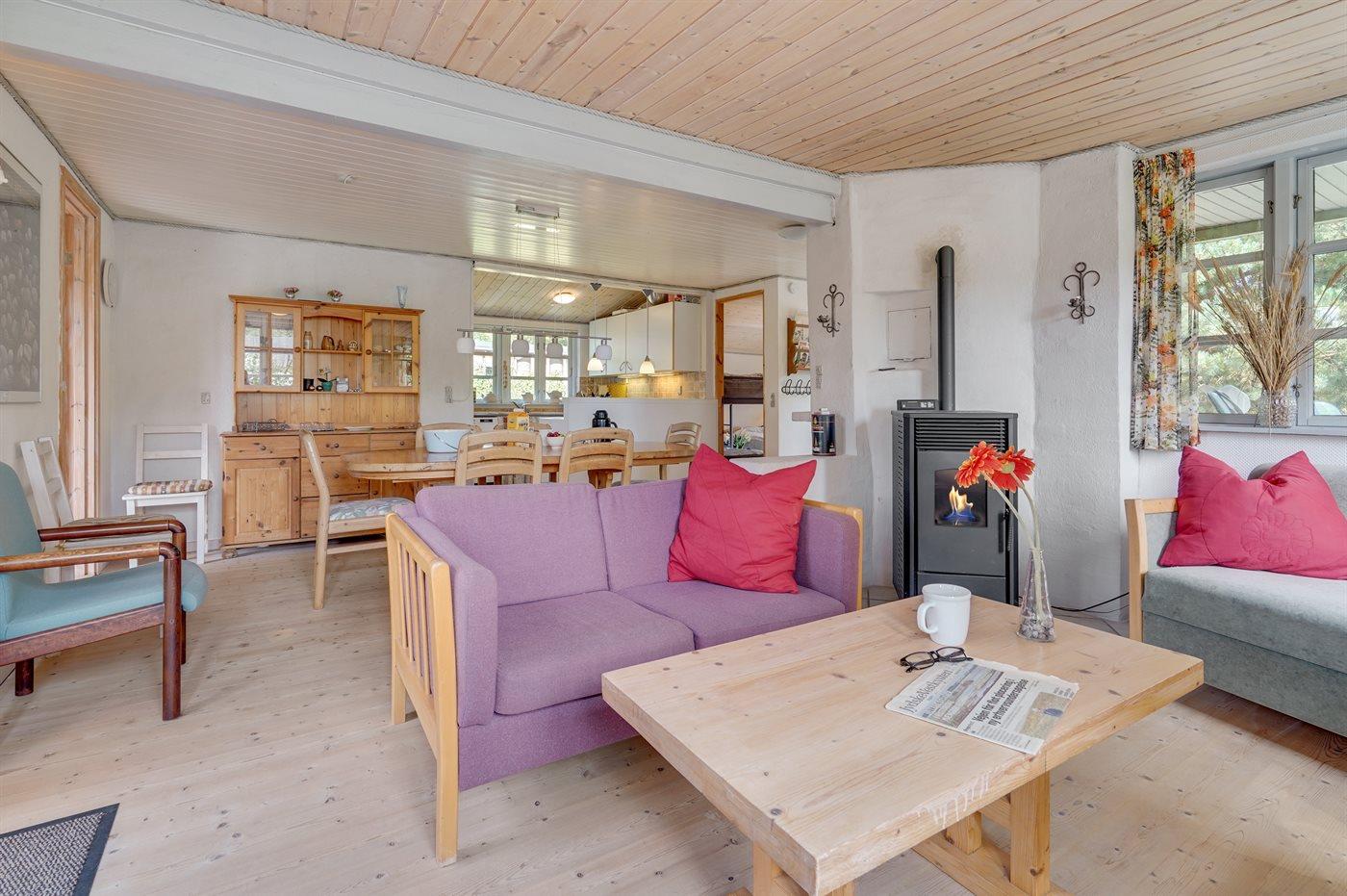 Ein reizendes Ferienhaus mit einem Außenareal, das zu Ballspiele und andere Aktivitäten einlädt – hier finden Sie sowohl Sonne als auch Schatten. Mit nur 300 Metern zu einem der schönsten Sandstrände Dänemarks besteht die Möglichkeit zu baden, die Sonne zu genießen oder einen abendlichen Strandspaziergang zu unternehmen.