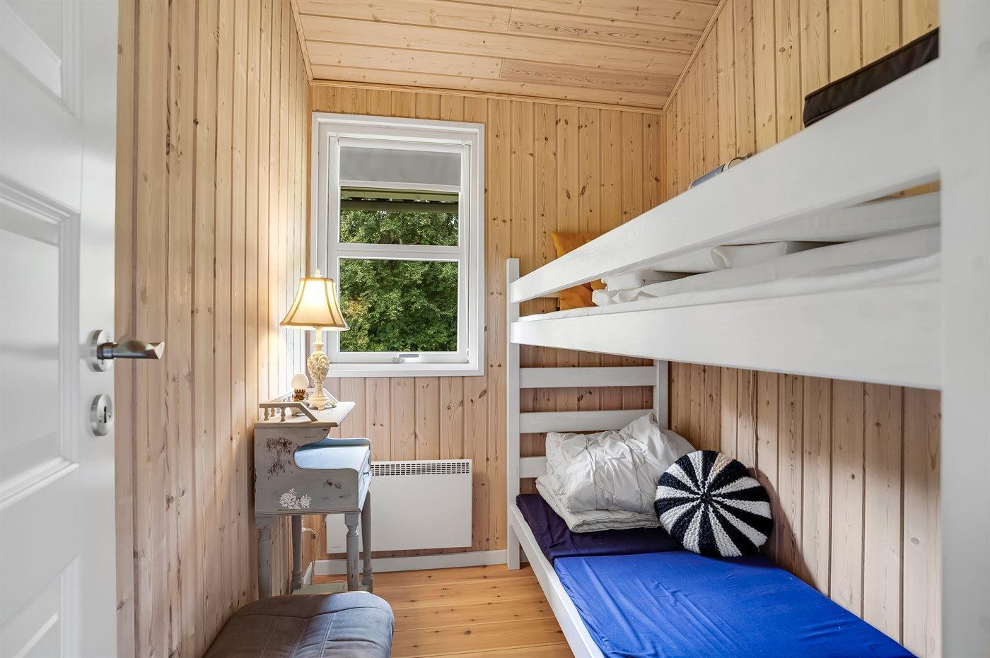 Die Schlafplätze verteilen sich auf 2 Schlafräume. 2 Schlafplätze in einem Doppelbett. 2 Schlafplätze in einem Etagenbett.