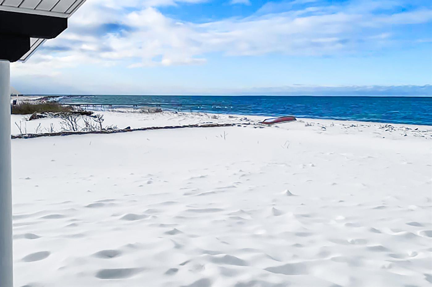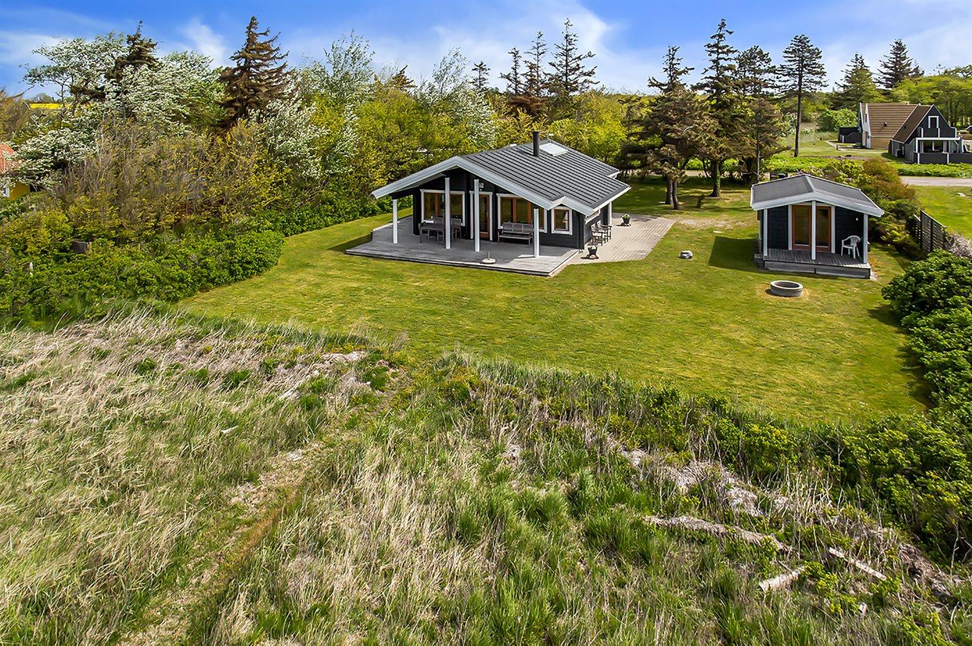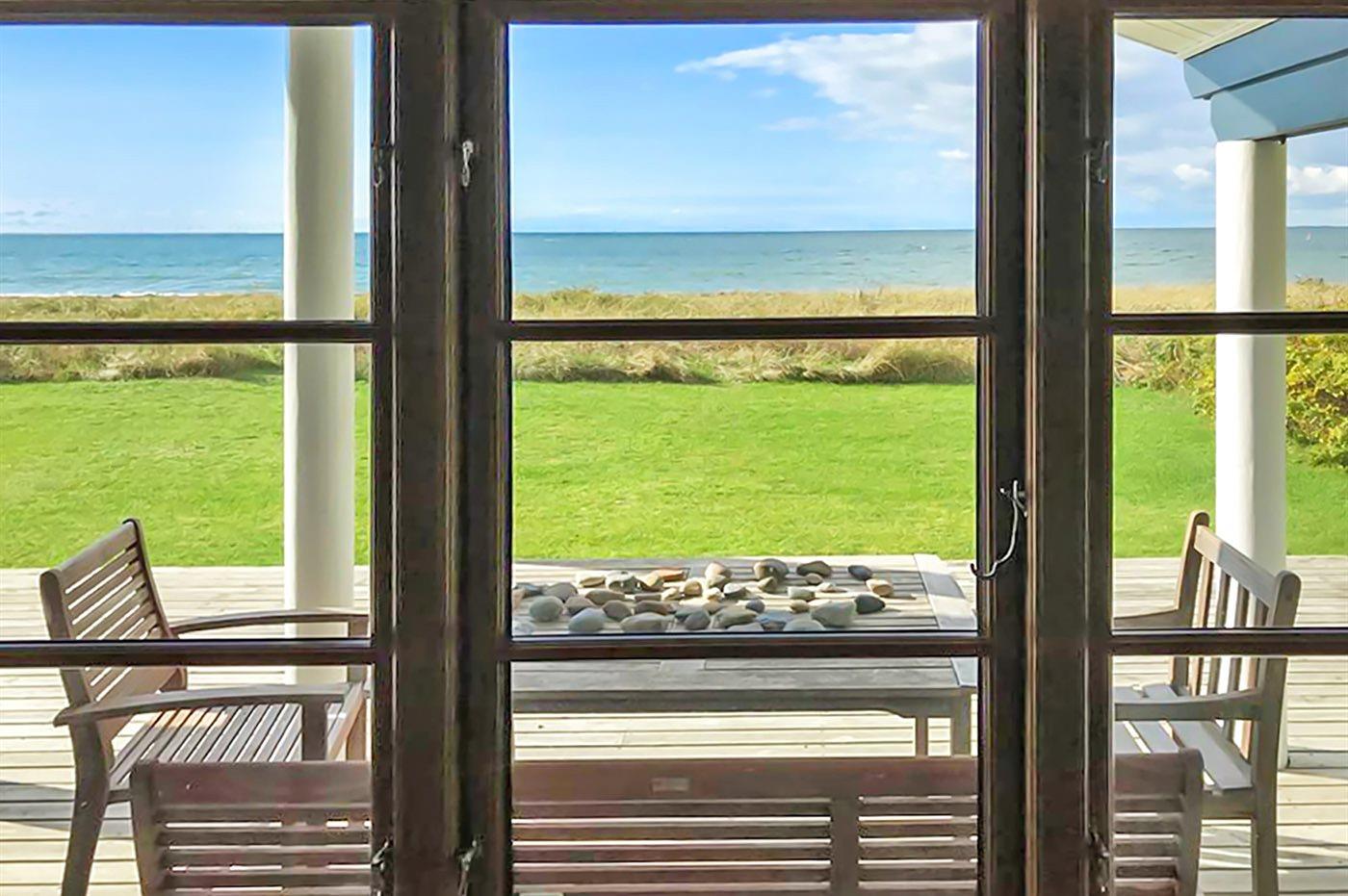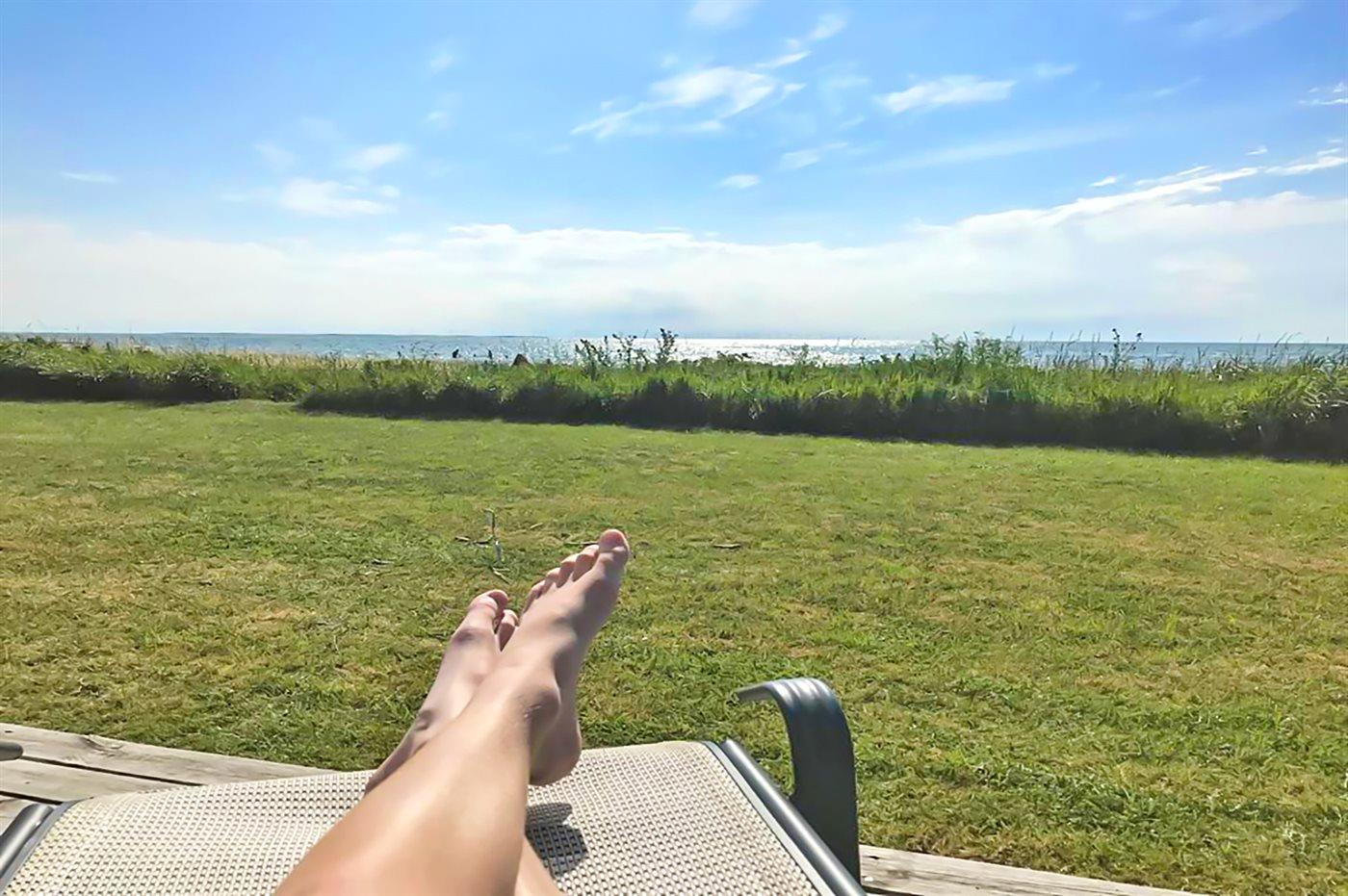 Die Ferienunterkunft liegt auf einem 1204 m² großen Naturgrundstück mit Privatstrand. Bis zum Meer sind es 10 m. Das nächste Geschäft ist 1000 m weit entfernt. Zur Ferienunterkunft gehört ein 50 m² großer, offener Terrassenbereich. Außerdem gibt es eine 20 m² große, überdachte Terrasse und eine Außendusche für den Sommer. Auch ein Weber-Kugelgrill steht zur Verfügung. Parkmöglichkeiten an der Ferienunterkunft.
