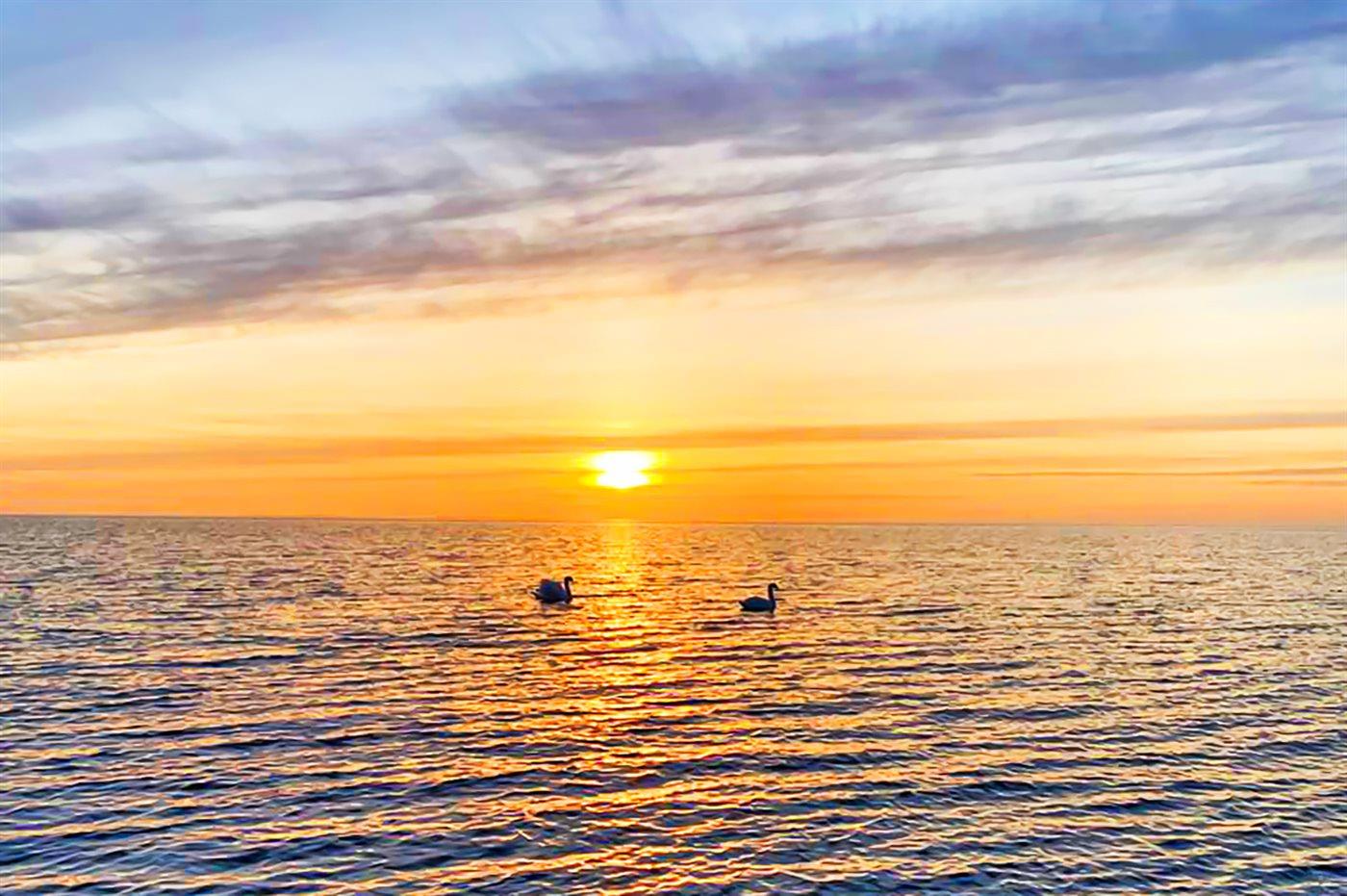 Am steinlosen, schönen Sandstrand wird das Wasser nur langsam tiefer. Die Sonne spiegelt sich den ganzen Tag im Wasser und geht am Abend direkt vor der Terrasse unter. Der Strand ist ideal zum Surfen und für Kinder geeignet.
