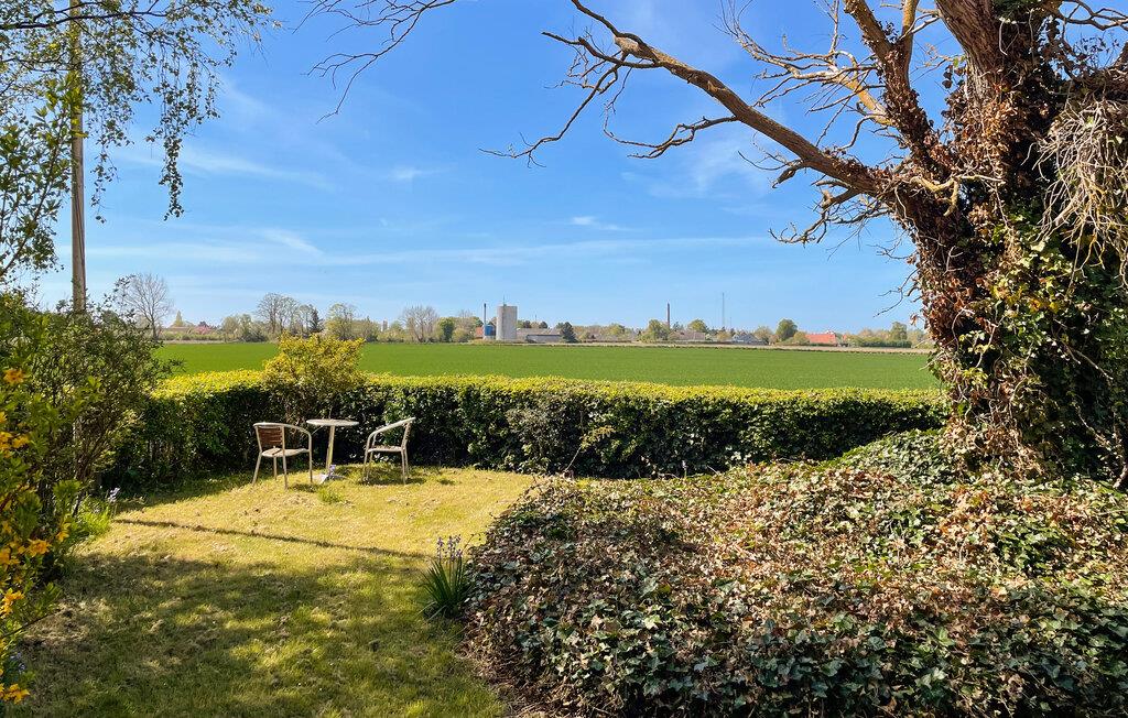 Genießen Sie entspannte Urlaubstage in diesem Ferienhaus mit weitem Blick über Felder.