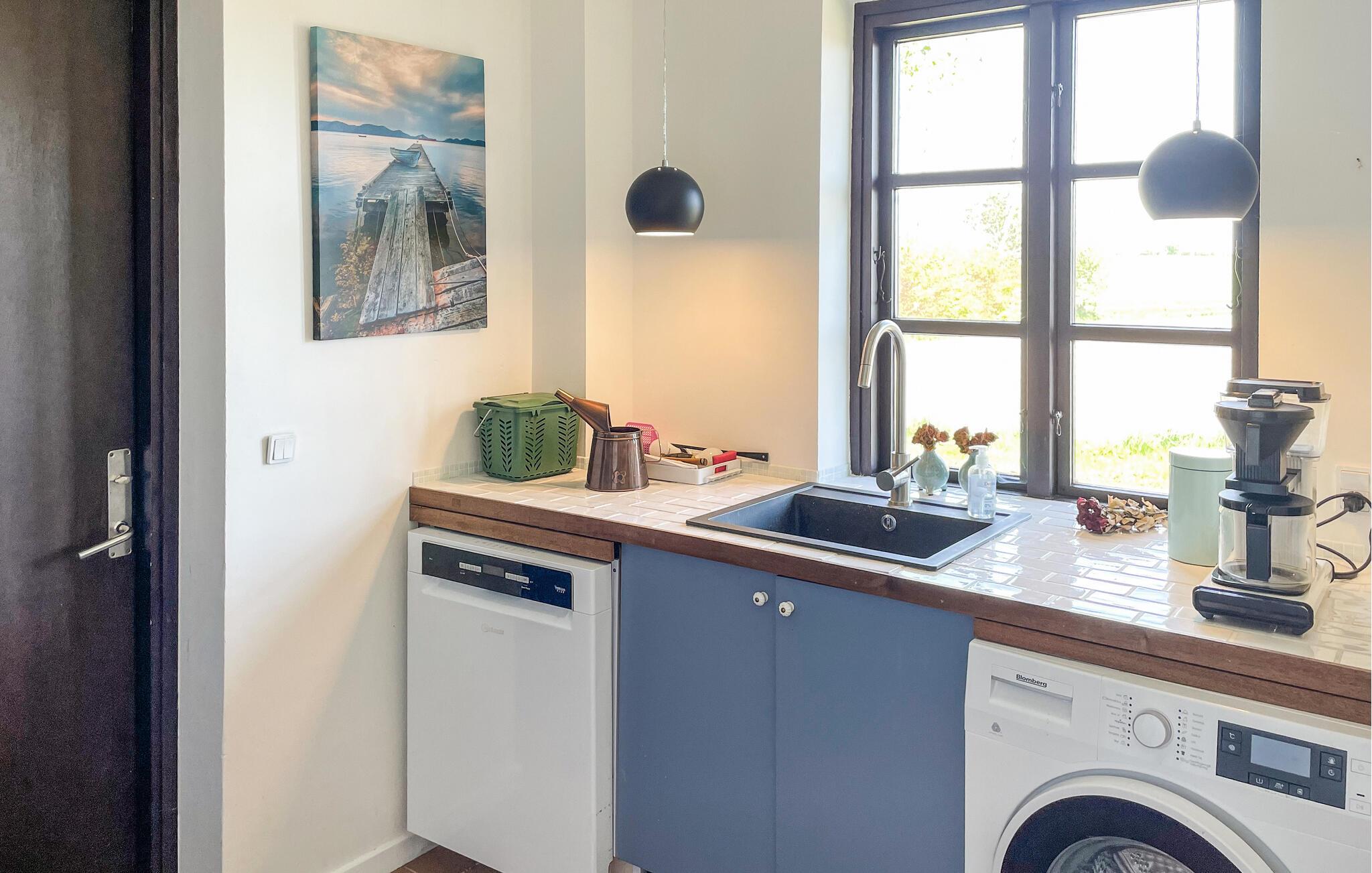 In diesem Ferienhaus wohnen Sie ruhig und ländlich und sind dennoch nur eine kurze Fahrt von der Küste entfernt. Lassen Sie sich von der freundlichen Atmosphäre und den durchdachten Details dieses Hauses empfangen. Im Inneren erwarten Sie gemütlich eingerichtete Räume mit viel Platz für gemeinsame Stunden. Ruhen Sie sich auf dem großen Ecksofa aus, lesen Sie ein Buch oder planen Sie am langen Esstisch Ihren nächsten Ausflug. Die helle, offene Küche bietet neben einem Essplatz auch einen schönen Blick ins Grüne. Im Obergeschoss stehen weitere Sitzgelegenheiten, ein Fernseher und ein Spielbereich zur Verfügung, ideal für Kinder oder ruhige Abende mit der Familie oder Freunden.