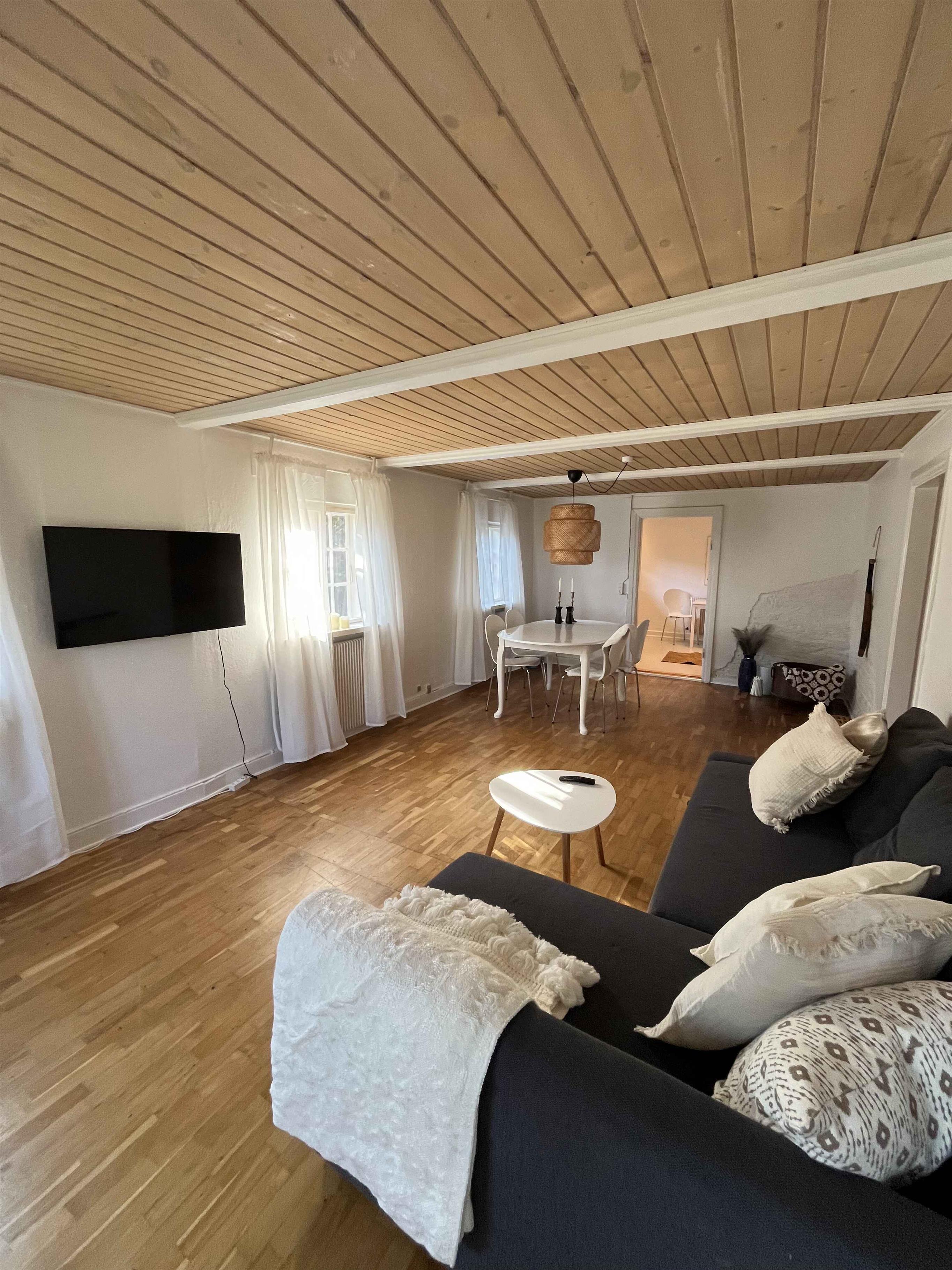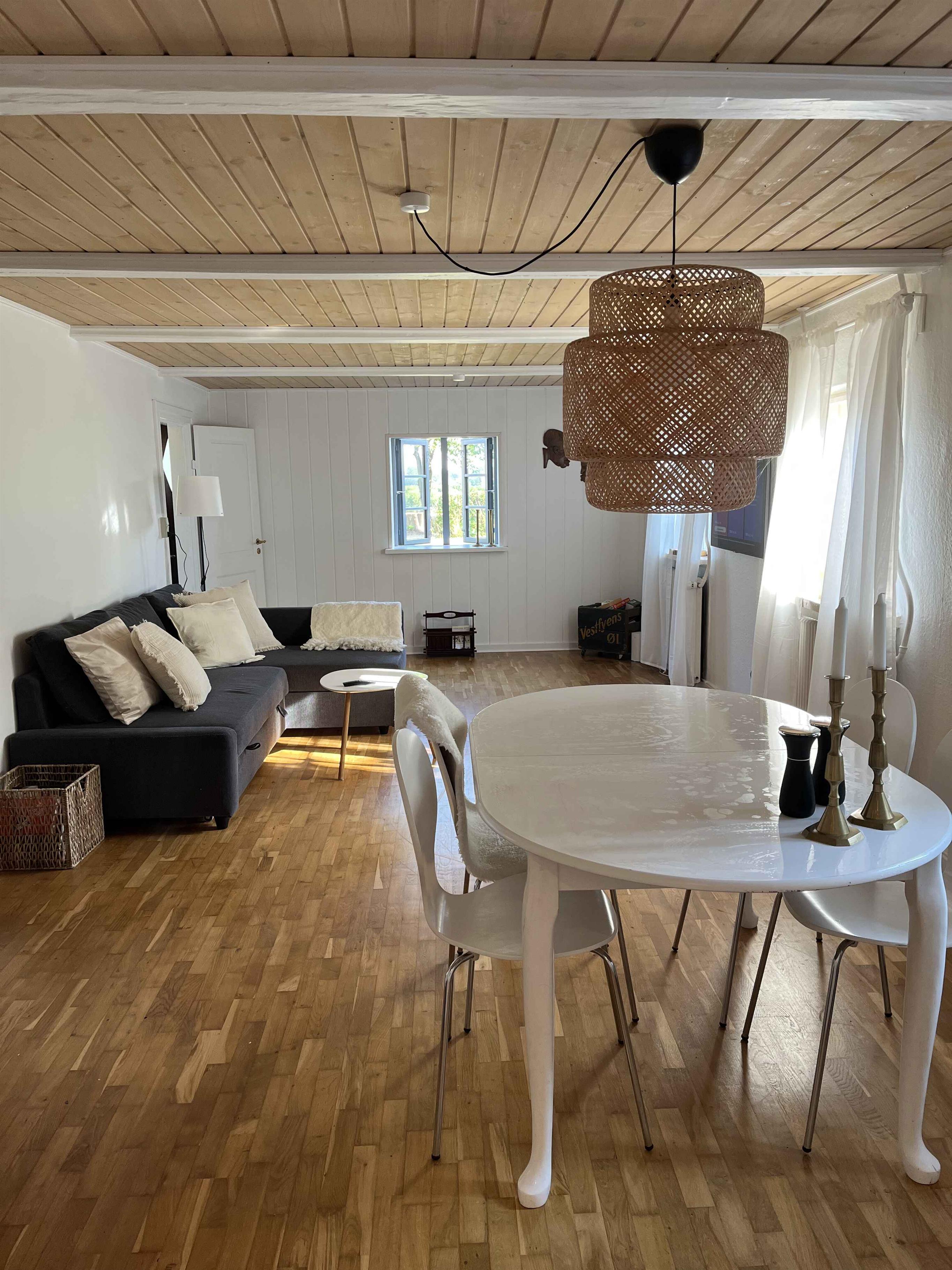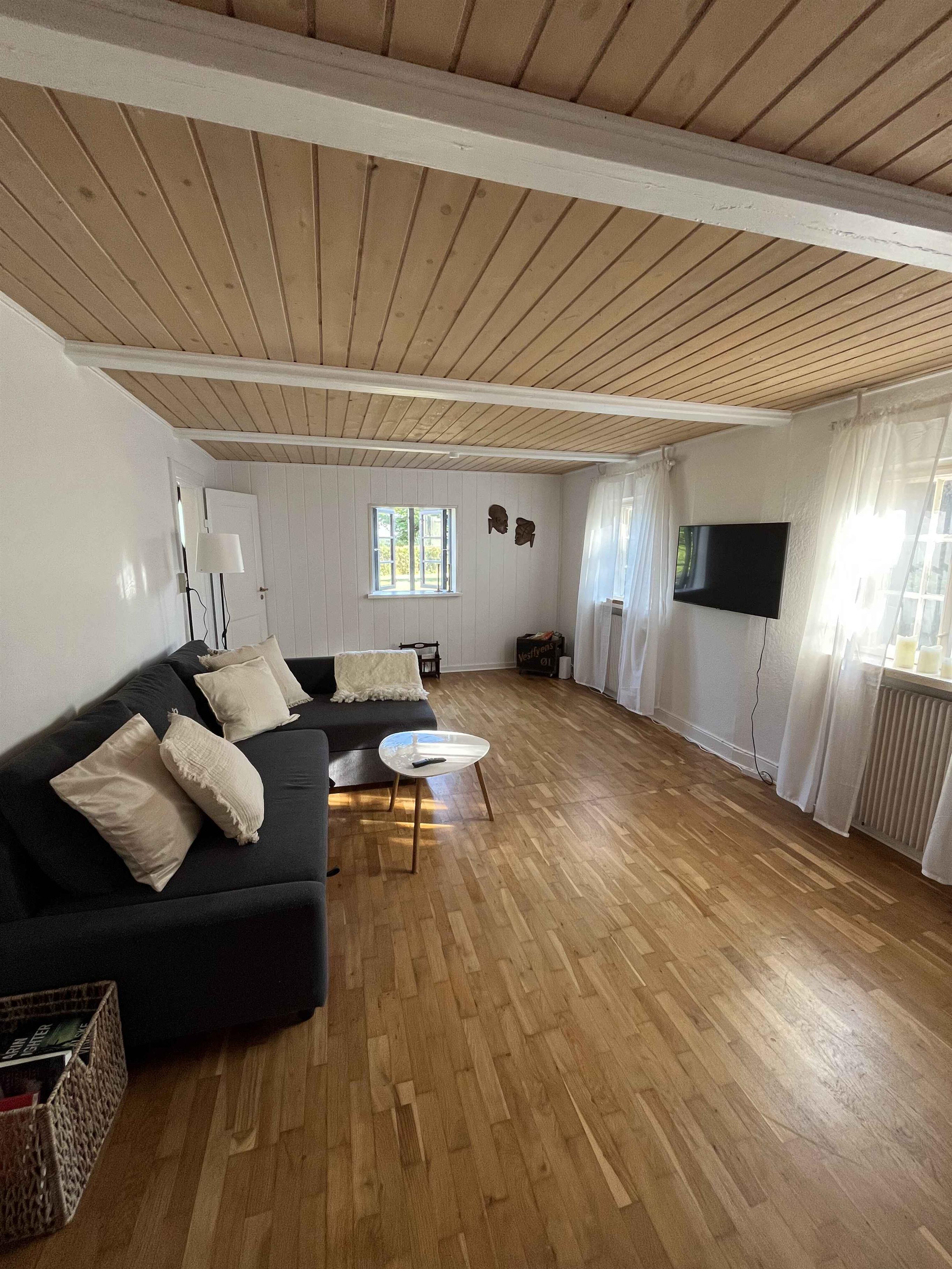 Dieses großzügige Ferienhaus mit 125 m² bietet Platz für die ganze Familie, mit drei Schlafzimmern und insgesamt acht Schlafmöglichkeiten. Es gibt viele Möglichkeiten für gemeinsame Erlebnisse und Entspannung – drinnen wie draußen in der offenen Natur. Die Einrichtung ist vom klassischen Stil dänischer Badehotels inspiriert, mit hellen Räumen, durchdachten Details und einem Fokus auf Komfort. Das Haus verfügt über Internet und eine Gasheizung, die es das ganze Jahr über angenehm macht. Man wohnt hier ruhig und ungestört mit herrlichem Blick über weite Felder. Abends senkt sich die Sonne sanft über die Landschaft, und man hört nur die Geräusche der Natur – kein Verkehr, keine Hektik. Im Haus gibt es viele Bücher, Spielkarten und Brettspiele – perfekt für gemütliche Stunden. Trotz der ruhigen Lage ist es nur eine kurze Autofahrt nach Marielyst und zu den Stränden an Falsters Ostküste. In zehn Minuten ist man am Meer – ideal zum Baden, Spazierengehen oder für ein Eis in der Sonne. Die Umgebung bietet zahlreiche Urlaubserlebnisse für Groß und Klein. Marielyst verfügt über einen langen, kinderfreundlichen Sandstrand, Restaurants, Minigolf und Sommerleben. In der Nähe kann man Rad fahren, Vögel beobachten oder Hofläden besuchen. Gedser Odde – der südlichste Punkt Dänemarks – ist ganz in der Nähe und lädt zu Spaziergängen mit Meerblick ein. Ein ruhiger und großzügiger Rückzugsort – und dennoch nah an allem.