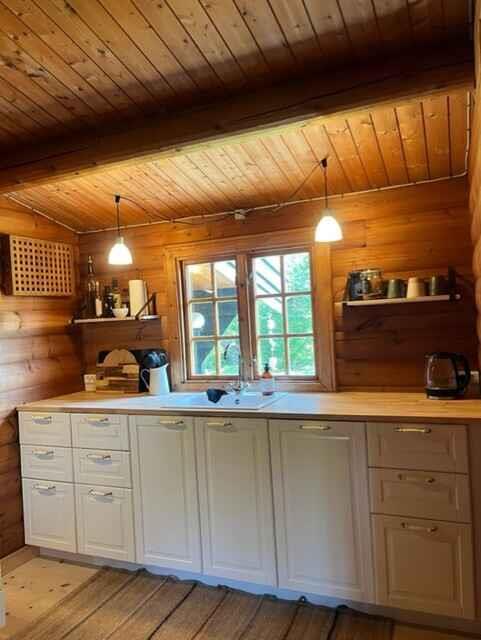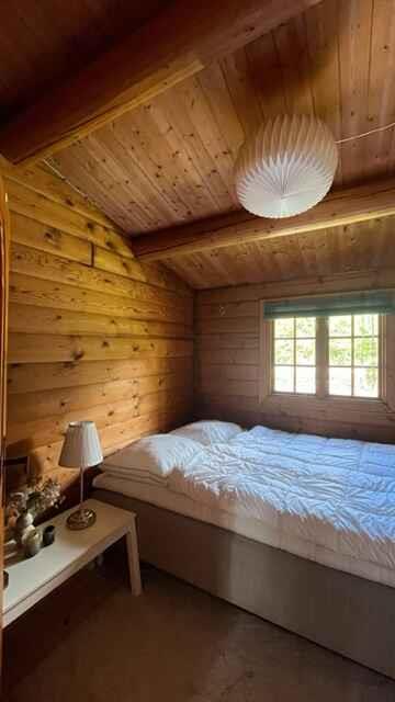 Norwegische Blockhütte nahe Badestrand und Natur