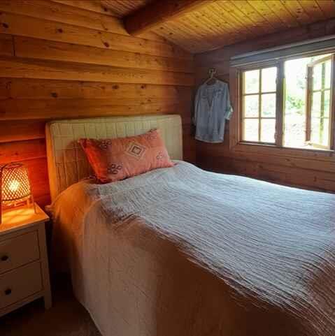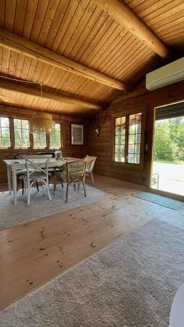 Authentische norwegische Blockhütte mit Grasdach – ideal für Ruhe, Gemütlichkeit und Nähe. Träumen Sie von einer Auszeit vom Alltag und völliger Entschleunigung? Ein Ort für Entspannung, Gespräche, Brettspiele und Gartenleben – dann sind Sie hier richtig. Offener Wohn- und Essbereich mit neuem Kaminofen und Blick in den eingezäunten Garten. Moderne Küche von 2022 mit Geschirrspüler, Backofen, Kühlschrank und Gefrierfach. 3 Schlafzimmer: Schlafzimmer 1: Doppelbett 140x200 cm Schlafzimmer 2: Doppelbett 140x200 cm Schlafzimmer 3: zwei Einzelbetten 90x200 cm Neues Badezimmer mit Dusche und Fußbodenheizung. Genießen Sie den Garten mit Gartenmöbeln, Grill, Hängematten, Gartenspielen oder übernachten Sie im neuen Shelter. Ein kleines Juwel mit täglichem Besuch von Eichhörnchen, Spechten, Vögeln und Rehen. 1.200 m² großes, abgeschirmtes Grundstück. 800 m / 8 Minuten zu Fuß zum Strand, ausgezeichnet als bester Badestrand, nahe dem Naturgebiet Bøtø Skoven. 8 km nach Marielyst, 6 km nach Gedser Odde. Fähre Gedser–Rostock 4,3 km, Supermarkt 4,7 km. Keine Jugendgruppen. Keine Haustiere erlaubt. Achtung: Wird nicht für gewerbliche Nutzung vermietet.