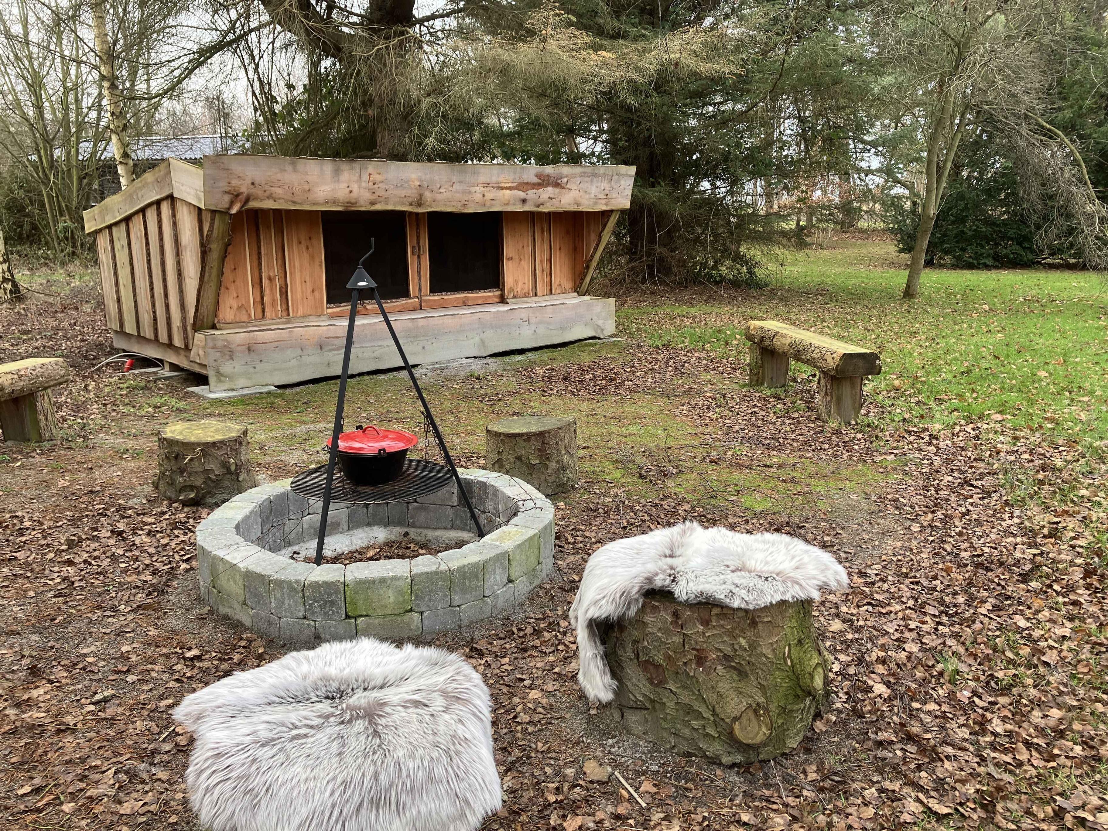 Schönes Sommerhaus mit Unterstand und Feuerstelle