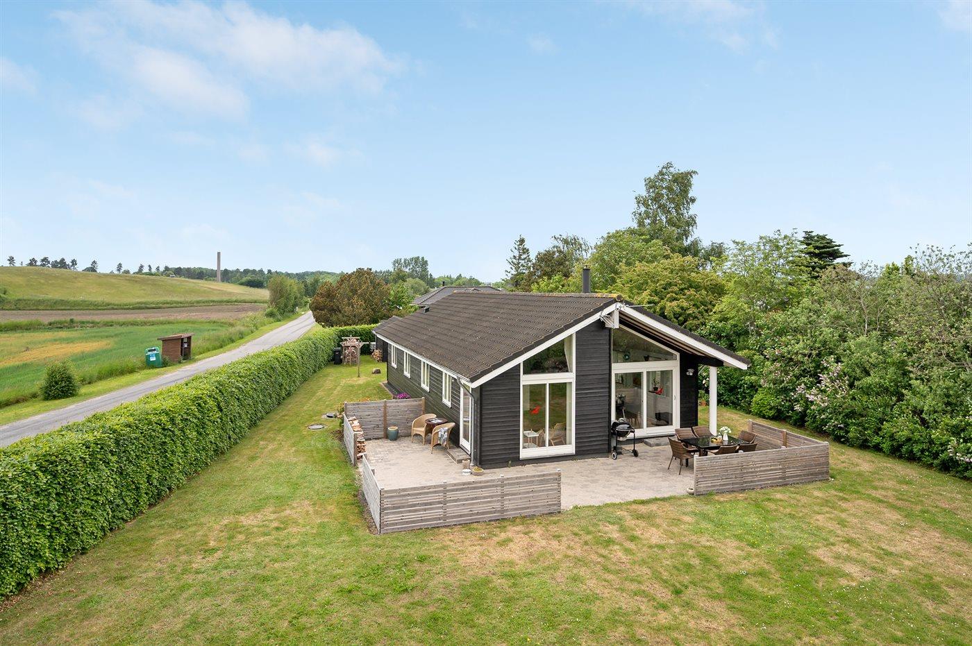 Die Ferienunterkunft liegt auf einem 920 m² großen Gartengrundstück. Die Entfernung zum Fjord beträgt 300 m. Es gibt einen Badesteg in der Nähe. Die nächste Einkaufsmöglichkeit liegt 1150 m entfernt. In einem Abstand von 1300 m gibt es einen Golfplatz. Es steht ein 45 m² Terrassenareal zur Verfügung. Außerdem gibt es 4 m² überdachte Terrasse.Lagerfeuerstelle. Es steht ein Grill zur Verfügung. Parkplatz auf dem Grundstück.