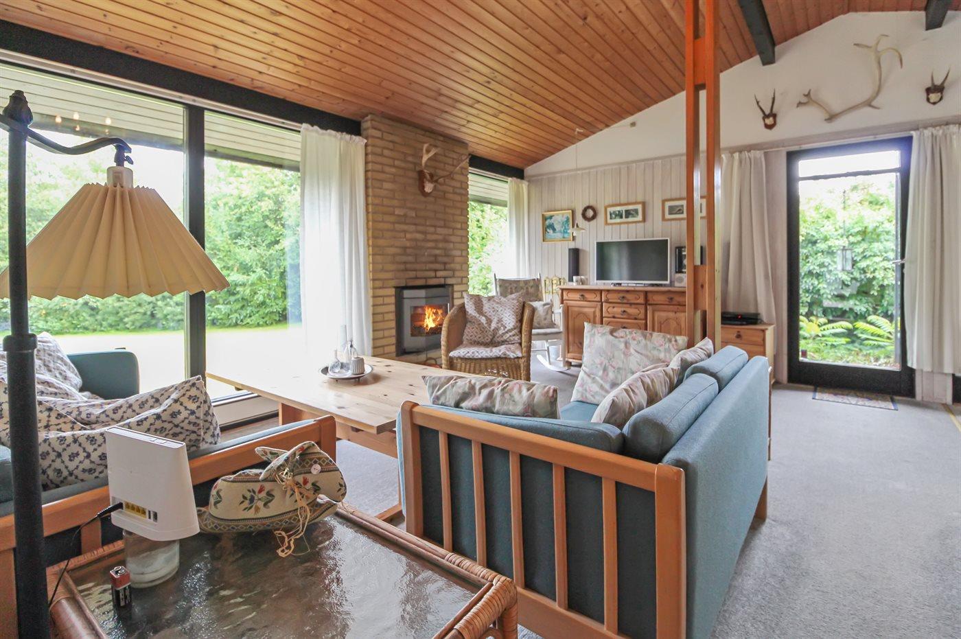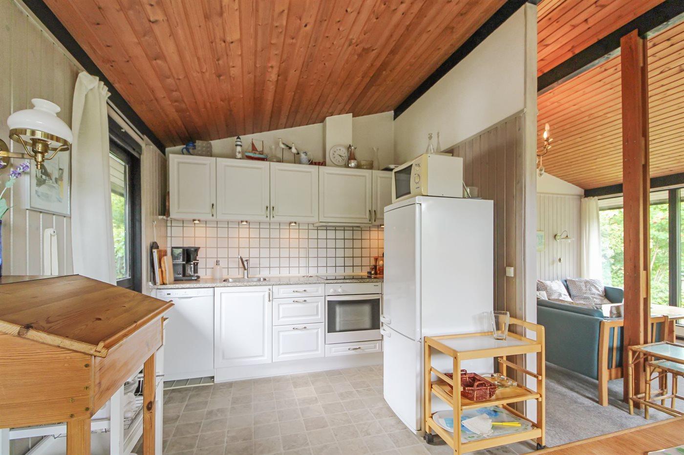Dieses kleine, gepflegte Ferienhaus aus Holz, 1972 gebaut und laufend renoviert, liegt auf einem Naturgrundstück im schönen Gilleleje. Um Gilleleje finden Sie eine einzigartige Natur mit Wald, Steilküsten, fruchtbaren Feldern und Heidehügeln wie z. B. das waldreiche Hügelgebiet Fyrbakkerne, das zwischen Gilleleje und dem Leuchtturm Nakkehoved Fyr liegt. Im Wald gibt es mehrere gekennzeichnete Wanderwege. Auch der schöne Sandstrand bei Gilleleje mit seichtem, ruhigem Wasser sollte erwähnt werden. Zum Haus gehört eine überdachte Terrasse mit verschiedenen Gartenmöbeln. Innen gibt es hell gebeizte Holzwände sowie Holzdecken mit sichtbaren Deckenbalken. Helle Teppichböden im Wohnzimmer und in den Schlafzimmern, neuer PVC-Boden in der Küche. Kleines Badezimmer mit Fliesenboden und Duschnische. Die schöne Küche ist mit dem Ess-/Wohnzimmer kombiniert und u. a. mit Geschirrspüler, Mikrowelle, Tiefkühlgerät, Umluftofen und Herd mit Ceran-Feld ausgestattet. Im Wohnzimmer mit schrägenden Holzdecken, die den Raum eine gewisse räumlichkeit verleihen, finden Sie Kamin mit Einsatz (kann auch geschlossen benutzt werden), Radio, Stereoanlage mit CD-Spieler, DVD-Spieler und TV. Es steht kabellose Internetverbindung 25 GB/Woche zur Verfügung, nur für gewöhnlichen Verbrauch und nicht für z.B Streaming. Die Schlafplätze des Hauses verteilen sich auf 3 Zimmer; 1 mit Doppelbett, 1 mit 1 Einzelbett und 1 mit 2 Kojenplätzen.