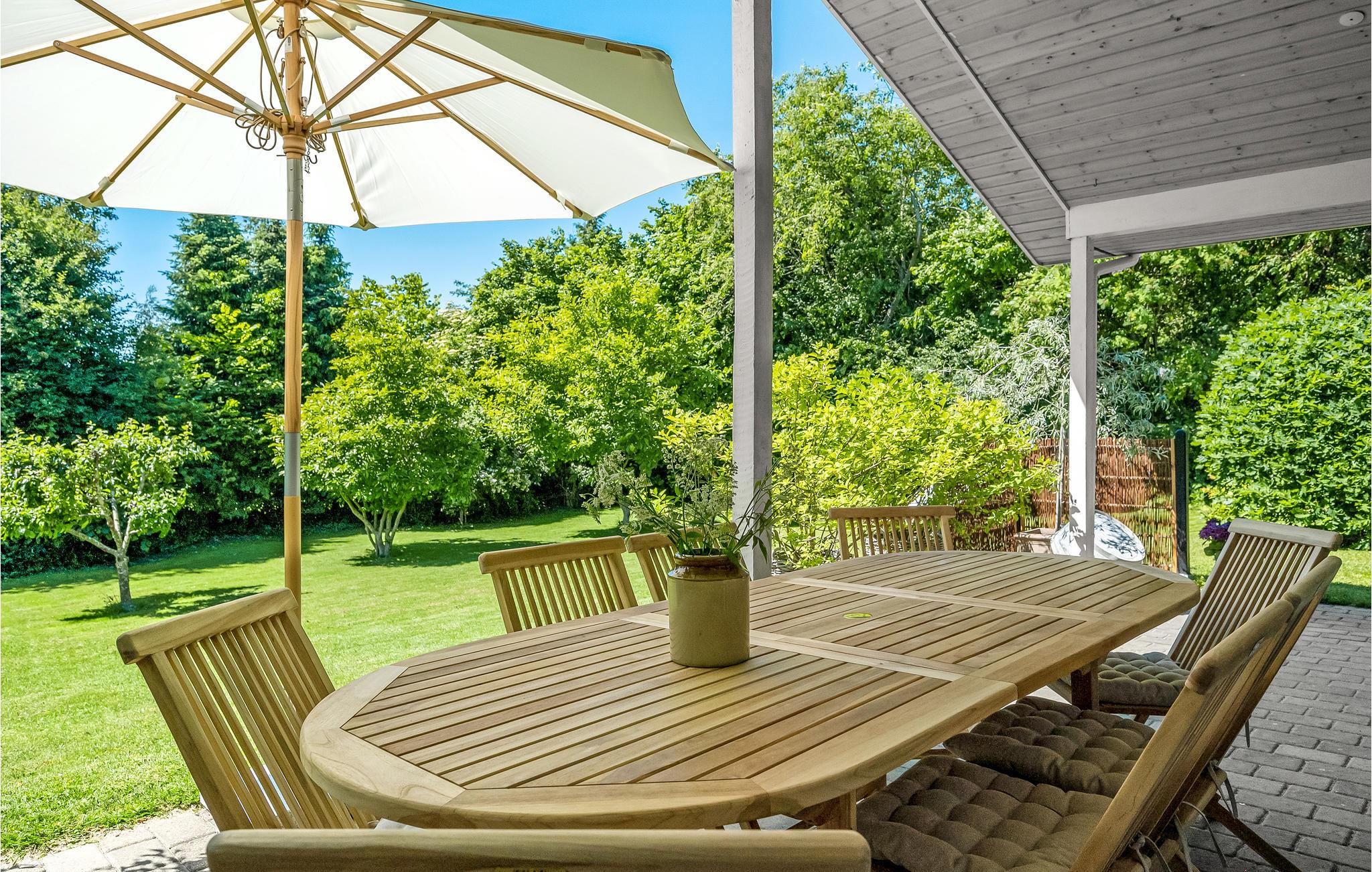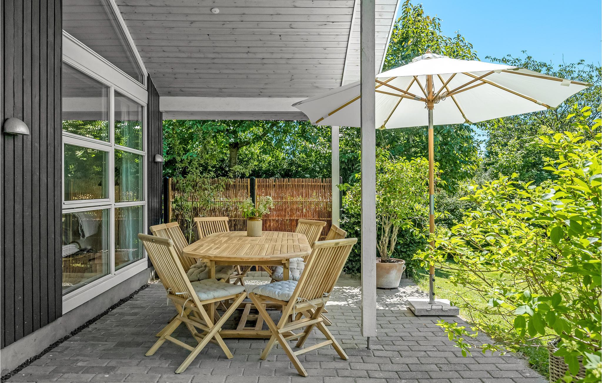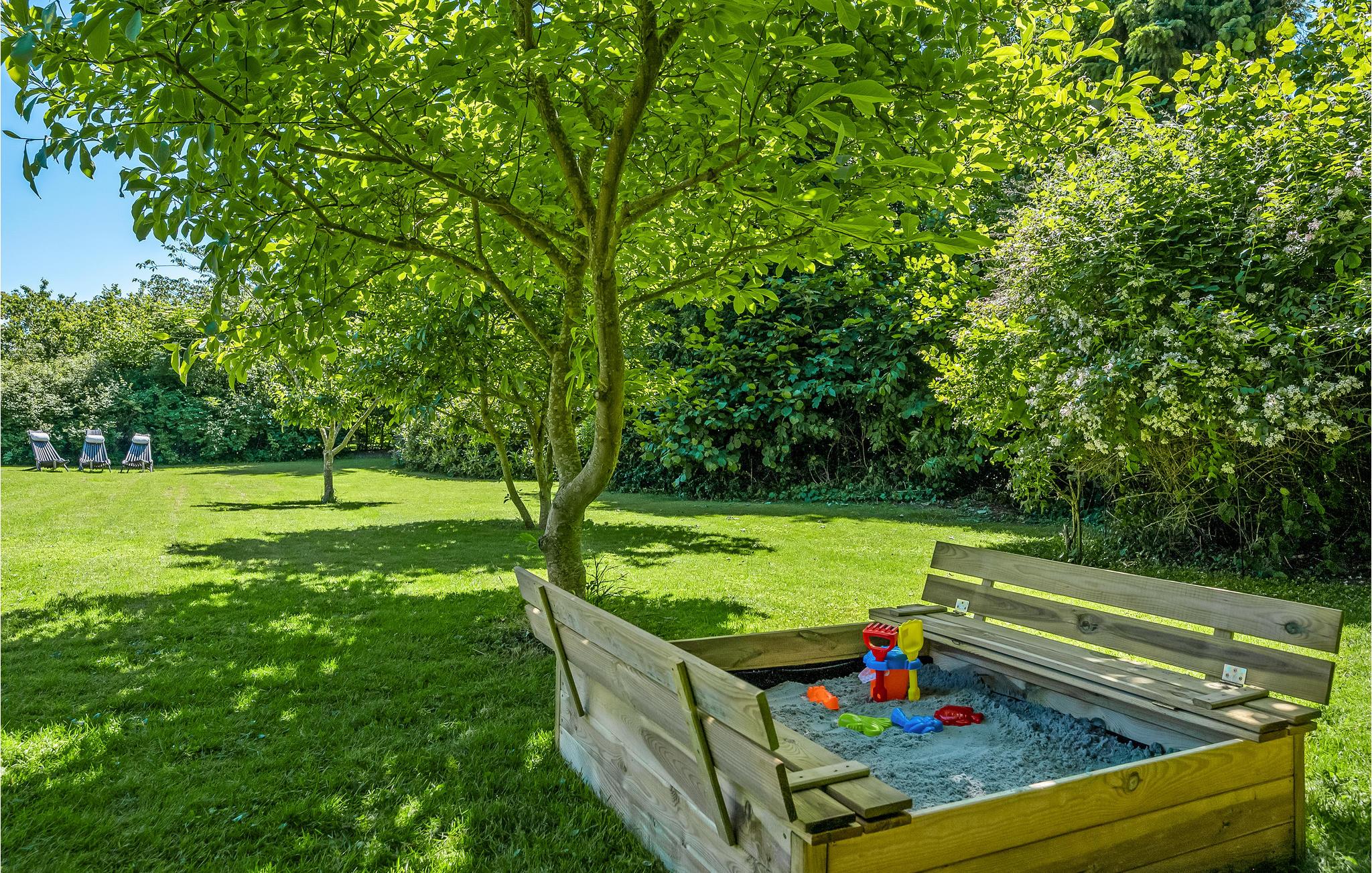 Genießen Sie auf der Terrasse bei einer Tasse Kaffee die ruhigen Morgenstunden in herrlicher Umgebung, während die Kinder im Sandkasten spielen oder sich gegenseitig zu einem Wikingerspiel herausfordern. Wenn Sie von einem Strandspaziergang zurückkehren, können Sie unter dem Sonnenschirm Schatten finden und ein kühles Getränk genießen, bevor Sie den Grill für ein köstliches Abendessen anwerfen, vielleicht mit frischem Fisch von einem der kleinen Fischhändler im Hafen von Gilleleje. Wenn Sie Ihren Hund mit in den Urlaub gebracht haben, wird er es sicher lieben, im eingezäunten Garten frei herumzulaufen.