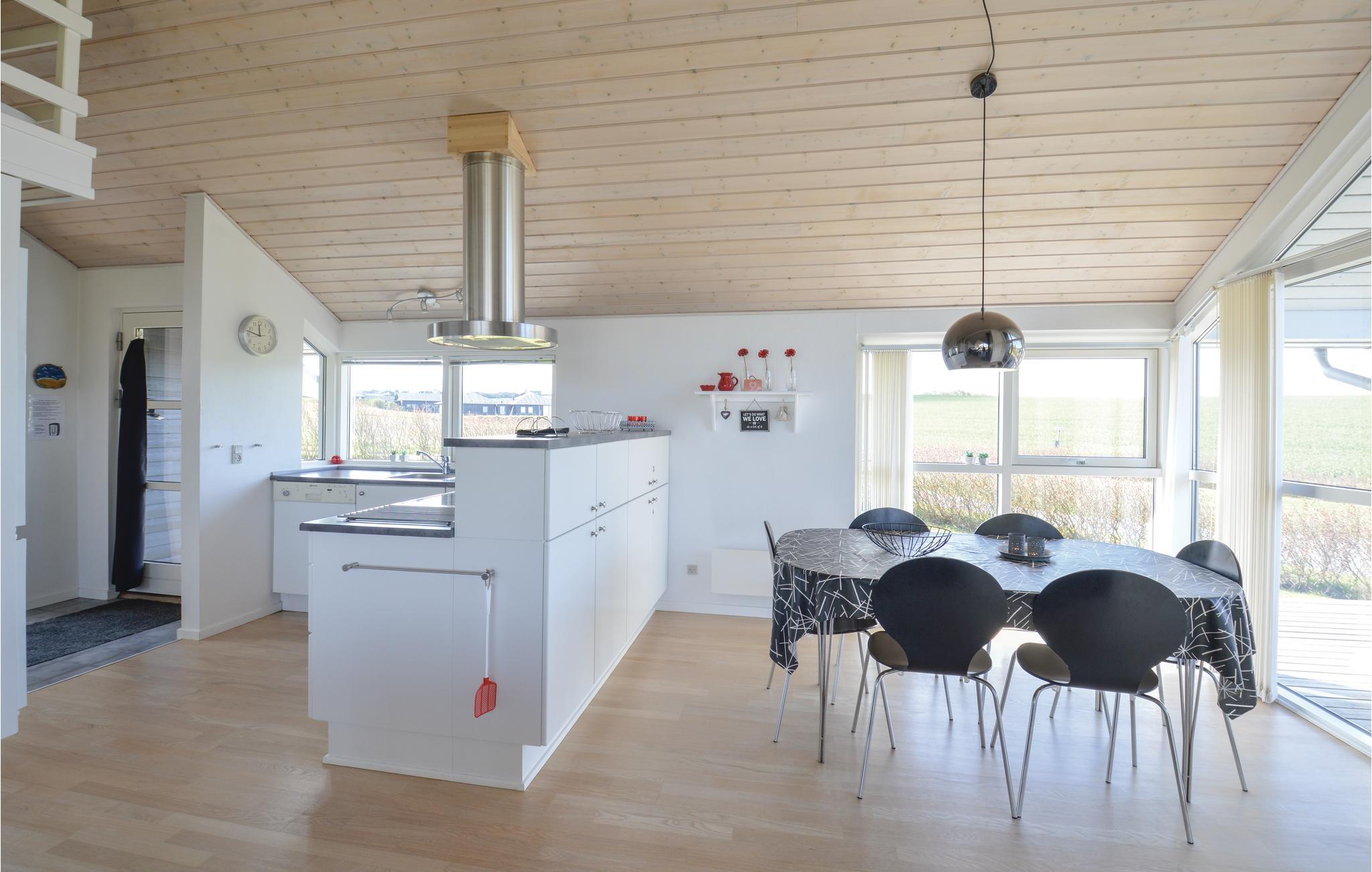 Dieses schöne und gepflegte Ferienhaus liegt im schönen Gjellerodde mit einer herrlichen Aussicht auf Nissum Bredning. Aus jedem ZImmer des Hauses bietet sich ein fantastischer Blick, entweder auf das Wasseroder auf friedliche Felder. Das Haus verfügt über drei Schlafzimmer mit Schlafboden, außerdem gibt es ein großes Bad mit Whirlpool und Sauna sowie eine helle Küche, die zum Wohnzimmer hin offen ist. Vom Wohnzimmer gelangen Sie auf die Terrasse und den großen Garten. Etwa 400 m vom Haus entfernt gibt es einen großen Spielplatz, ebenfalls mit Blick auf das Wasser, ein idealer Ausgangspunkt für Ihren Urlaub.