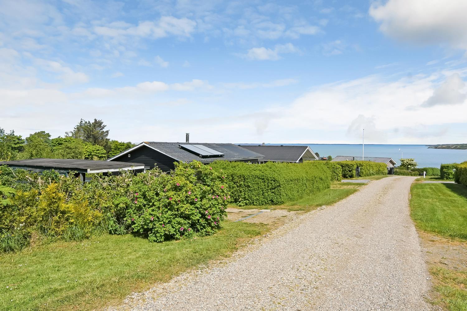 Das Haus befindet sich auf einem etwa 972 m² großen, hügeligen Naturgrundstück. Vom Esszimmer aus haben Sie Zugang zu einer Terrasse mit Gartenmöbeln und Sonnenliegen. Über eine kleine Treppe von der Terrasse aus haben Sie Zugang zu einer Aussichtsplattform, von der aus Sie den wunderschönen Panoramablick auf die Landschaft und den Limfjord genießen können. Am Haus gibt es unter anderem mehrere Parkmöglichkeiten im Carport des Hauses. Vom Haus aus gibt es ein schönes Wegesystem, das in wenigen Minuten direkt zum Wasser- und Badesteg führt. Hier können verschiedene Wasseraktivitäten wie Paddeln und Kajakfahren ausgeübt werden. Ca. 300 m vom Haus entfernt befindet sich der neue schöne Naturspielplatz aus Holz mit Fußballplatz und Rutsche und es ist auch nicht weit zum Golfplatz, Einkaufsmöglichkeiten oder zum Strand.