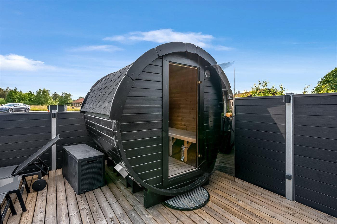Die Ferienunterkunft liegt auf einem 1600 m² großen Naturgrundstück. Die Entfernung zum Meer beträgt 750 m. Die Entfernung zu einem See beträgt 50 m. Die nächste Einkaufsmöglichkeit liegt 3500 m entfernt. Es steht ein offenes Terrassenareal zur Verfügung. Außerdem gibt es überdachte Terrasse. Schaukel. Trampolin. Fußballtor.Lagerfeuerstelle. Außensauna. Es steht ein Grill zur Verfügung. Es ist ein Ladestecker für Elektroautos installiert. Parkplatz auf dem Grundstück.