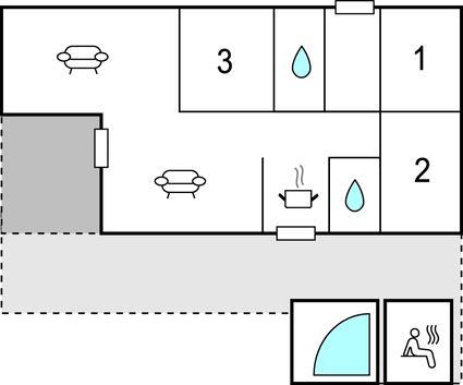Badezimmer (nr. 1) - WC. Warmes und kaltes Wasser. Dusche