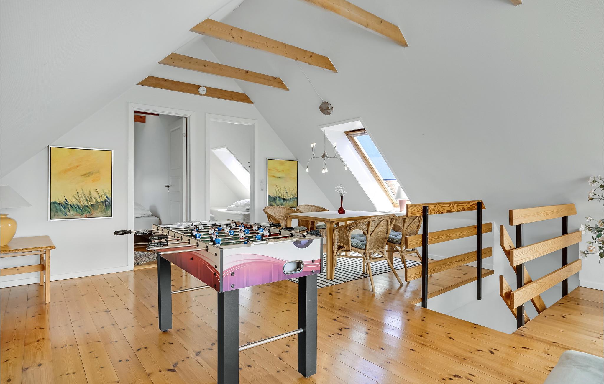 Mit einem alten Leuchtturm und weiten Feldern als Nachbarn, liegt diese nette Ferienwohnung nur 5 Minuten zu Fuß vom flachen Sandstrand entfernt, an dem Sie sicher ein angenehmes Plätzchen zwischen den Dünen finden werden. Das geräumige Haus bietet Ihrer Familie und Freunden viel Platz für einen gelungenen Ferienaufenthalt. Pool und Whirlpool sorgen für Spaß und Entspannung. 2006 wurde ein schöner Anbau mit Aktivitätsraum und 2 extra Schlafräumen errichtet. Auf dem gemütlichen Hofplatz sitzt man ganz ungestört, er ist an warmen Abenden ideal zum Grillen und Essen geeignet. Der Strand lädt natürlich während des ganzen Jahres zum Relaxen ein. Bei Gjerrild sind die Fischgründe besonders reichhaltig, hier beißen vor allem Forellen und Lachse und im Frühling der Hornhecht.