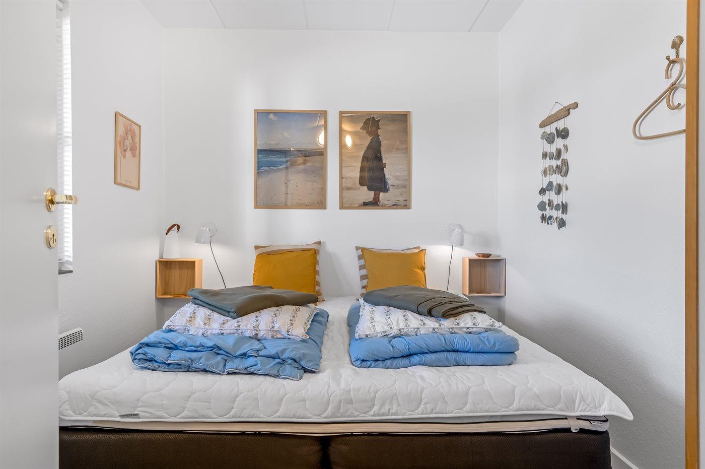 Es gibt einen Schlafraum. 2 Schlafplätze in einem Doppelbett. 2 Schlafplätze auf einer Doppelschlafcouch. Ferner steht ein Kinderbett zur Verfügung.