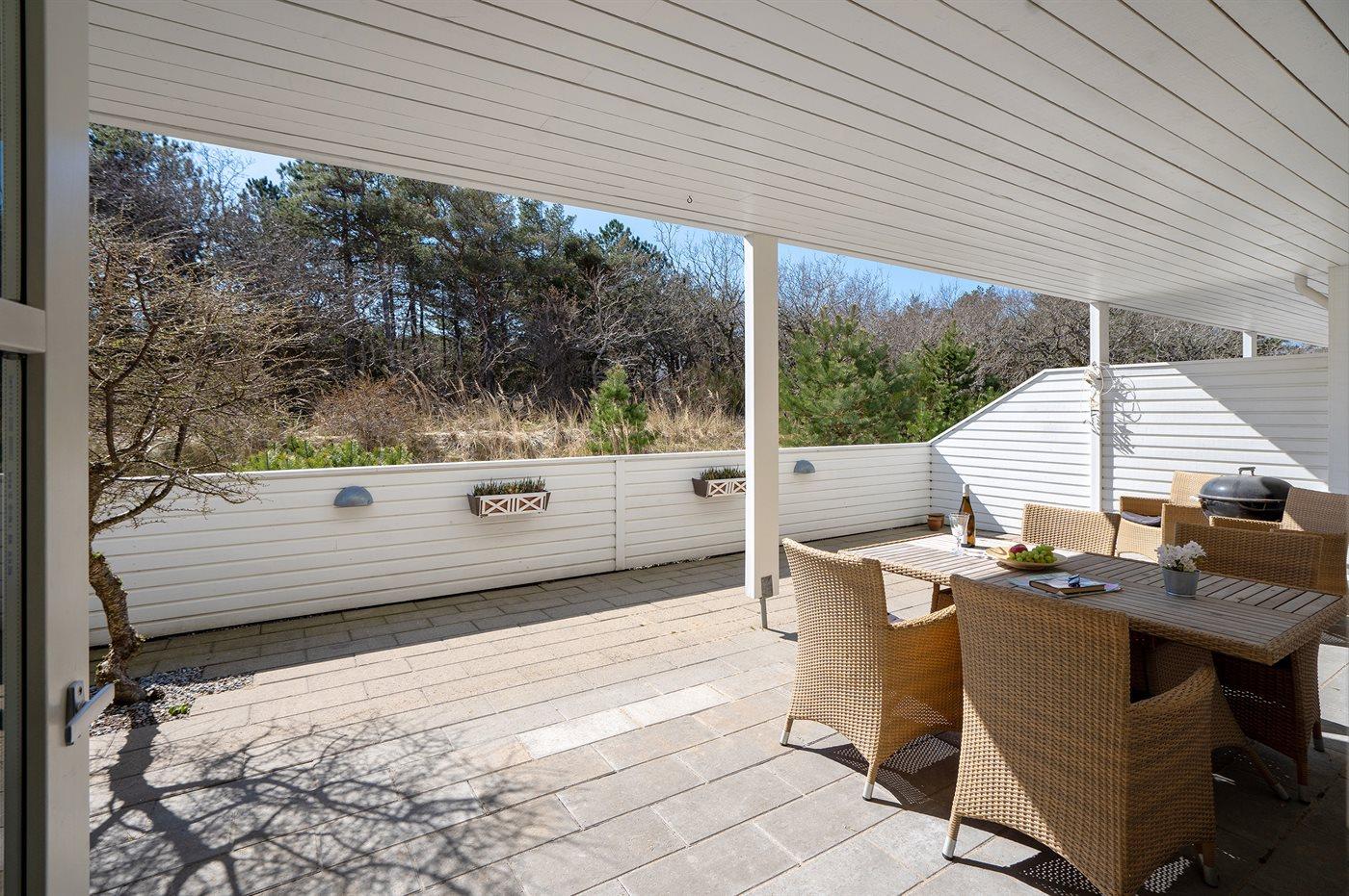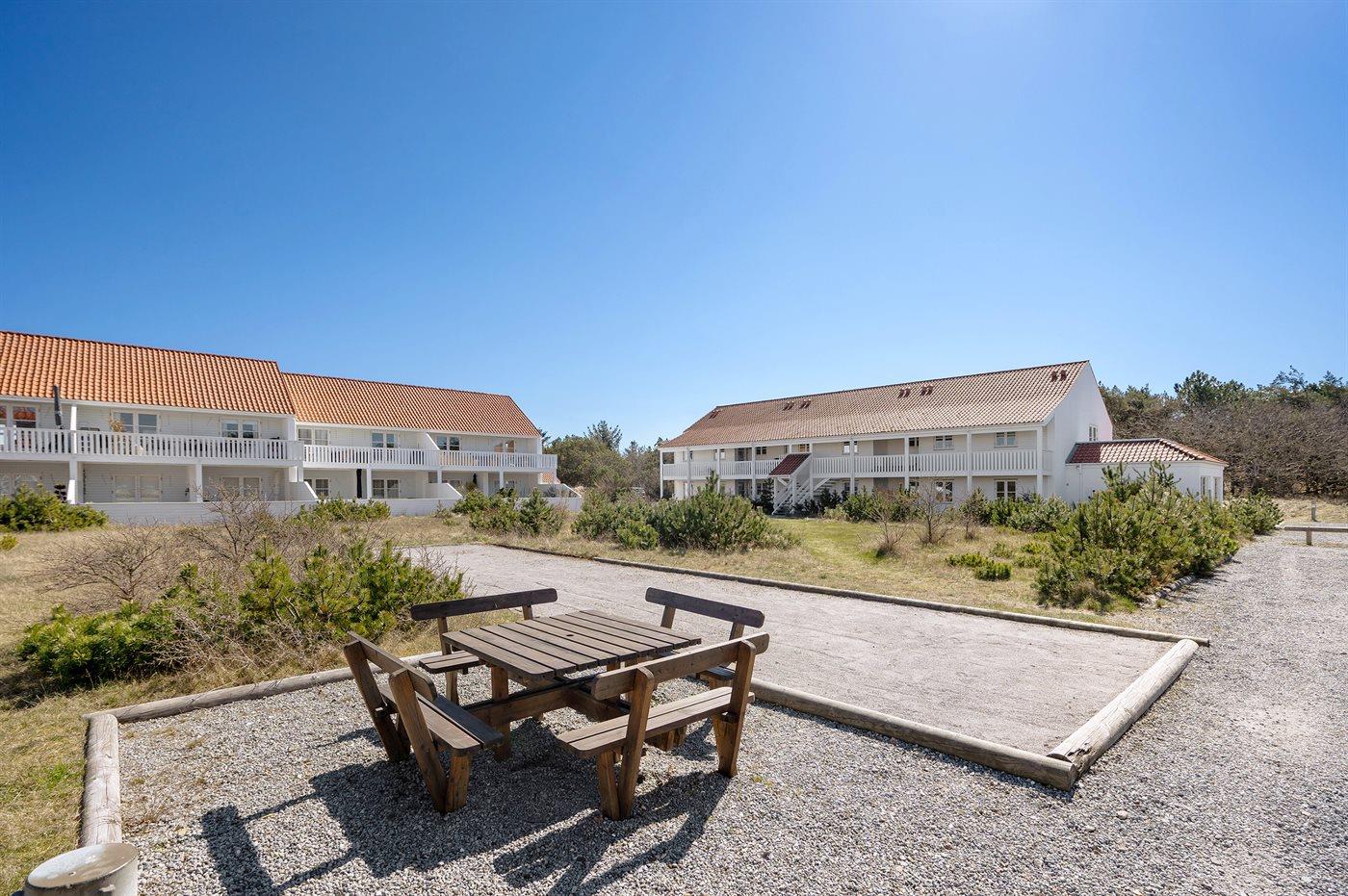 Dieses schöne Ferienwohnung liegt auf einem Dünengrundstück in landschaftlich schöner Umgebung, die zu lange Spaziergänge und Radtouren einlädt. Die Wohnung liegt nicht weit vom idyllischen Gl. Skagen und dem Wasser entfernt. Es stehen eine große, eingezäunte und teilweise überdacht Terrasse zur Verfügung sowie ein Gemeinschaftsgelände mit Spielplatz, Fußballplatz und Petanquebahn.