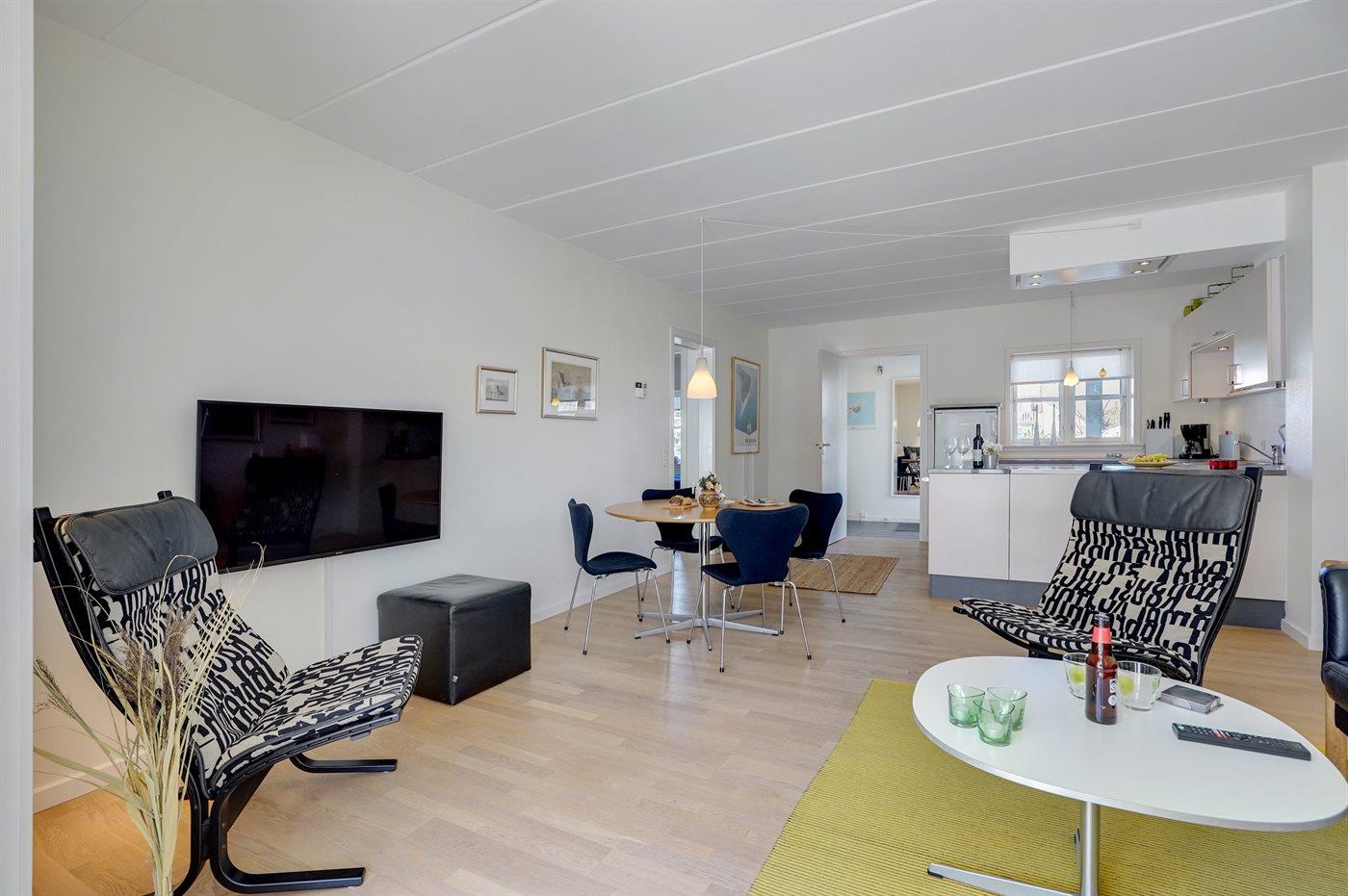 In der Ferienunterkunft gibt es einen Fernseher. 1 Smart-TV. 1-3 dänische Fernsehsender. 1-3 schwedische Fernsehsender. 1-3 norwegische Fernsehsender. 1-3 deutsche Fernsehsender. 1-3 englische Fernsehsender. Es steht kabellose Internetverbindung zur Verfügung.