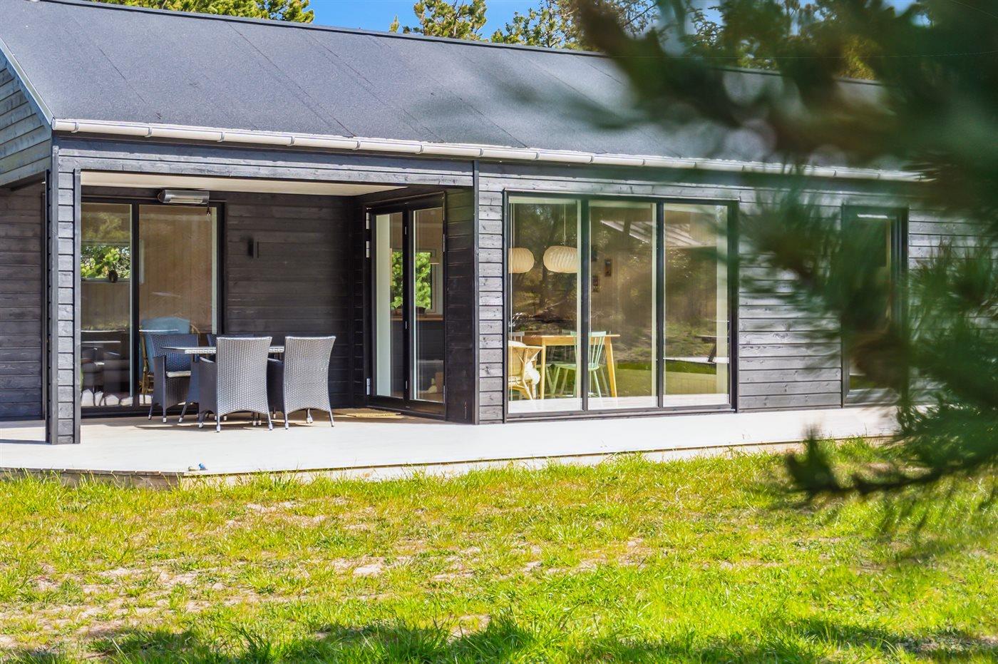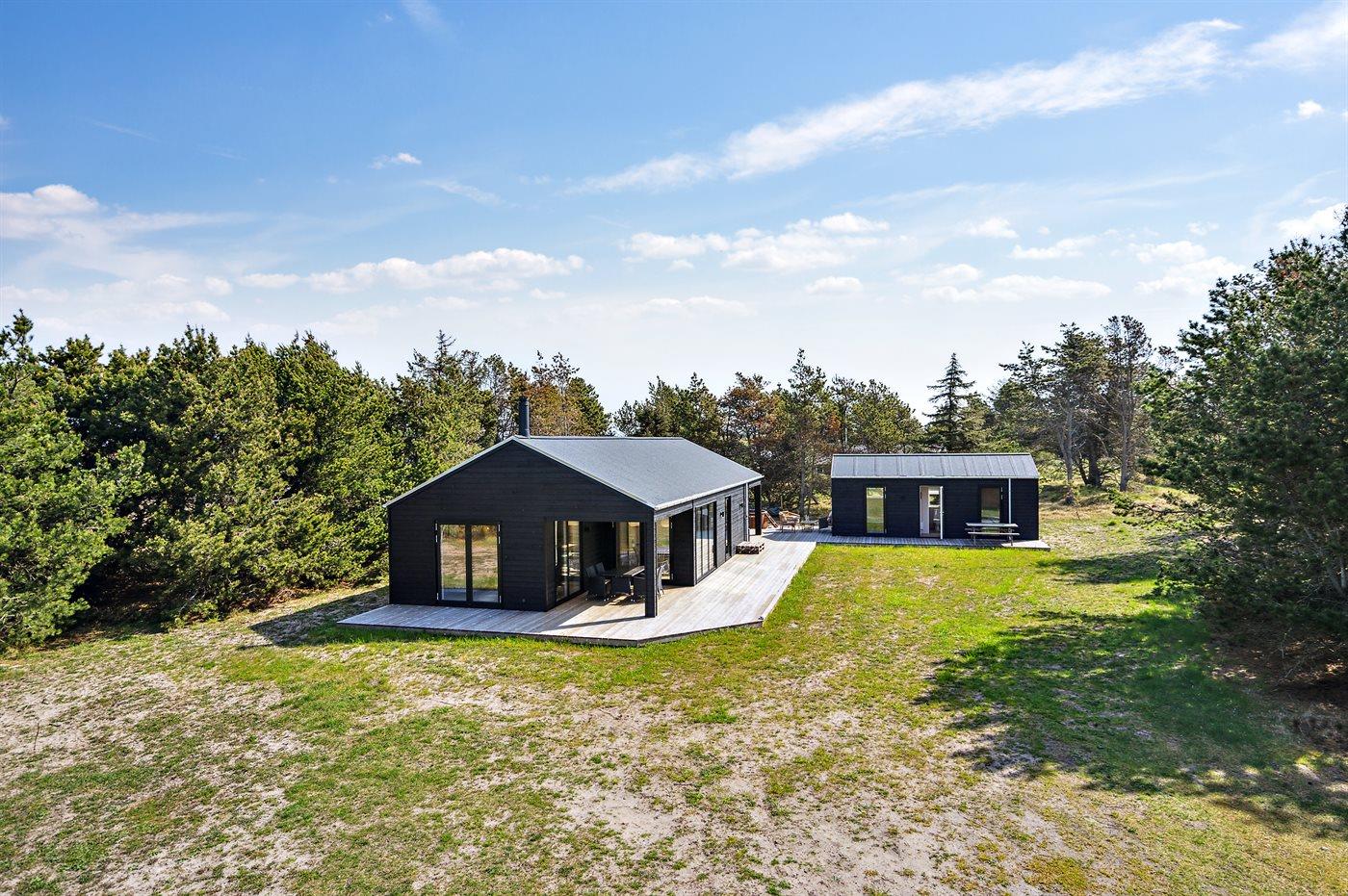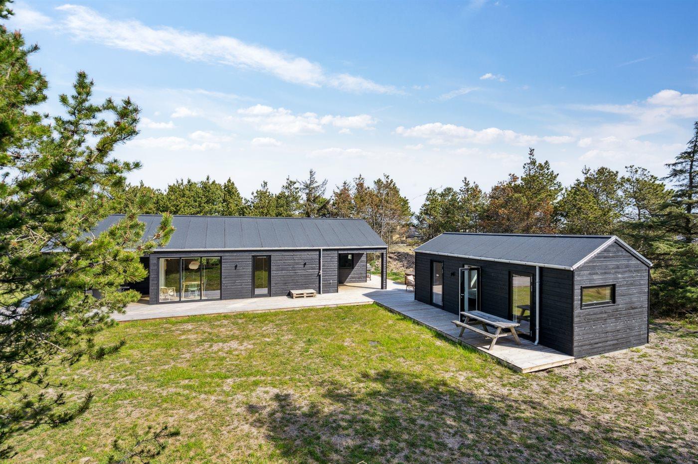 Modernes Ferienhaus mit Gästehaus nahe Strand und Skagen, ideal für Familien und Paare.