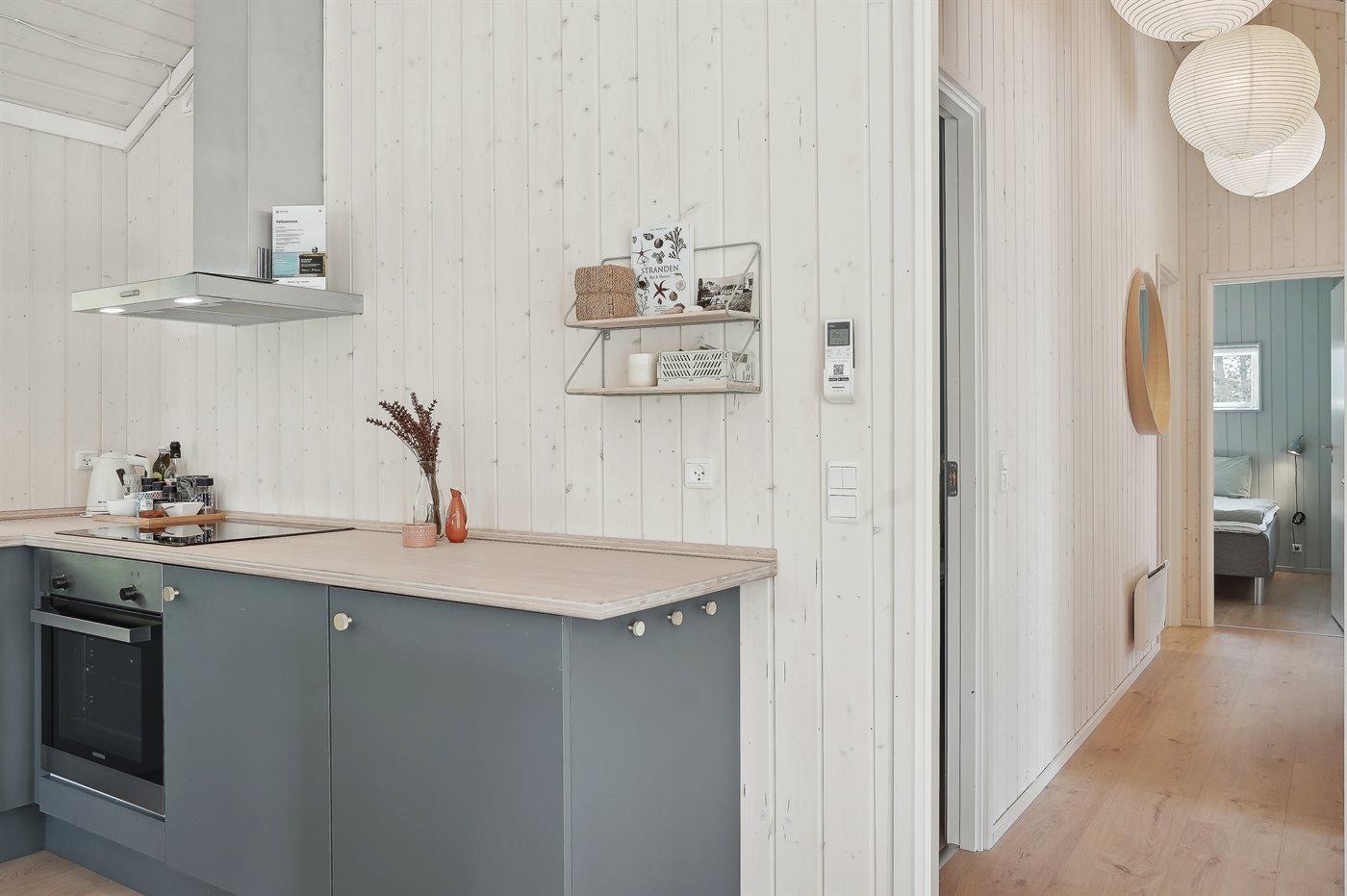 Die Küche ist mit Kühlschrank ausgestattet. Außerdem gibt es 4 Induktions-Kochzonen, Umluftofen sowie Geschirrspüler.