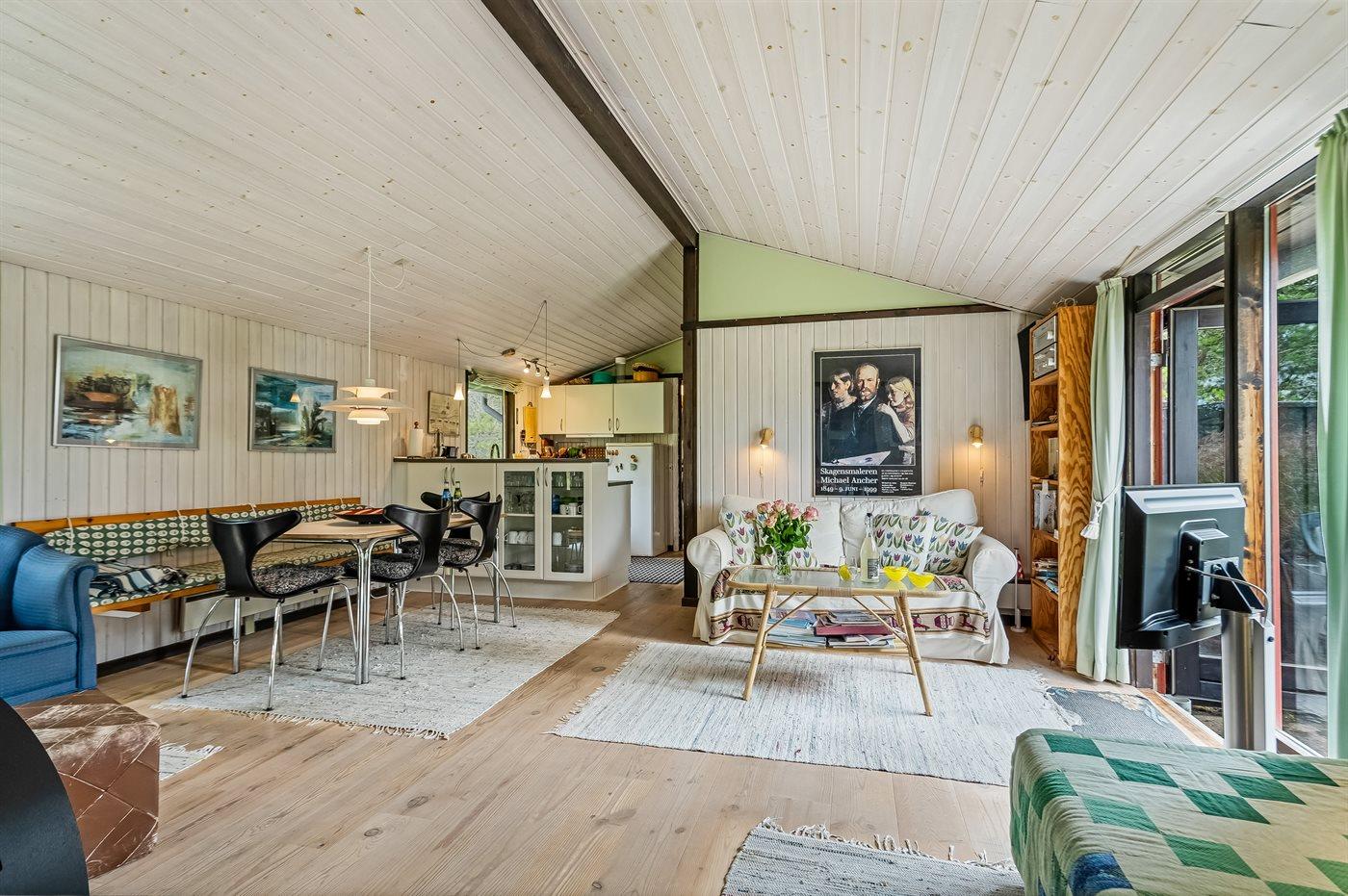 Dieses gemütliche Ferienhaus liegt in schöner Natur auf einem großen, ungestörten Grundstück im Feriengebiet Gl. Skagen. Das Haus liegt in der Nähe von dem Platz von wo aus man den Sonnenuntergang genießen kann, auch als ”Solnedgangspladsen” bekannt und dem schönen Badestrand.