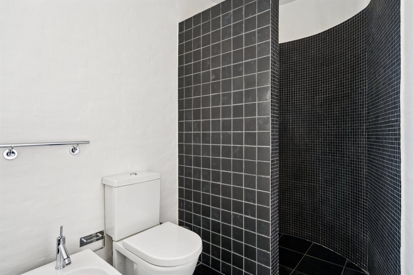 Es gibt 1 Badezimmer mit Duschnische und 2 Toiletten, davon 1 Gästetoilette. Fußbodenheizung in 1 Badezimmer.