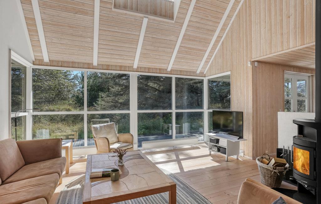 Das Haus ist gemütlich und geräumig und verfügt über große, nach Südwesten ausgerichtete Terrassen, auf denen Sie vom frühen Morgen bis zum späten Abend die Sonne genießen können. Denken Sie daran, einen Liegestuhl mitzubringen, da es nur gewöhnliche Gartenmöbel gibt. Aufgrund der ungestörten Lage des Hauses hat der Eigentümer entschieden, keine Vorhänge zu haben. Daher erleben Sie, dass die Natur ganz nah ist und viel Licht hereinfällt.