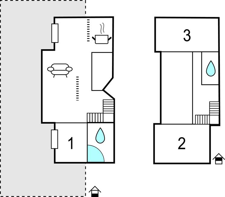 Badezimmer (nr. 2) - WC. Warmes und kaltes Wasser. Dusche