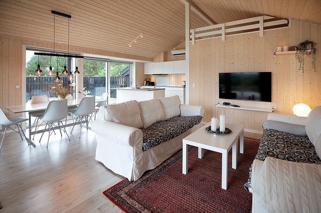 Im Wohnraum haben Sie die Möglichkeit Karten zu spielen oder einen leckeren Lunch in dem gemütlichen Essbereich zu genießen. Vom Wohnraum haben Sie Zugang zum Schlafboden des Hauses. Gute Internetverbindung mit der Möglichkeit für Streaming usw. Bluetooth Lautsprecher und eine tolle offene Küche mit Geschirrspüler. Es gehören dazu drei schöne Schlafzimmer, davon zwei mit Doppelbetten und das dritte mit Einzelbetten, sowie auch ein gutes Badezimmer mit Dusche. Alles im Haus stellt sich sehr einladend und hell vor. Jugendgruppen sind hier nicht willkommen, und der Gebrauch vom offenen Feuer ist nicht erlaubt sowie das Rauchen innen und draußen verboten ist.