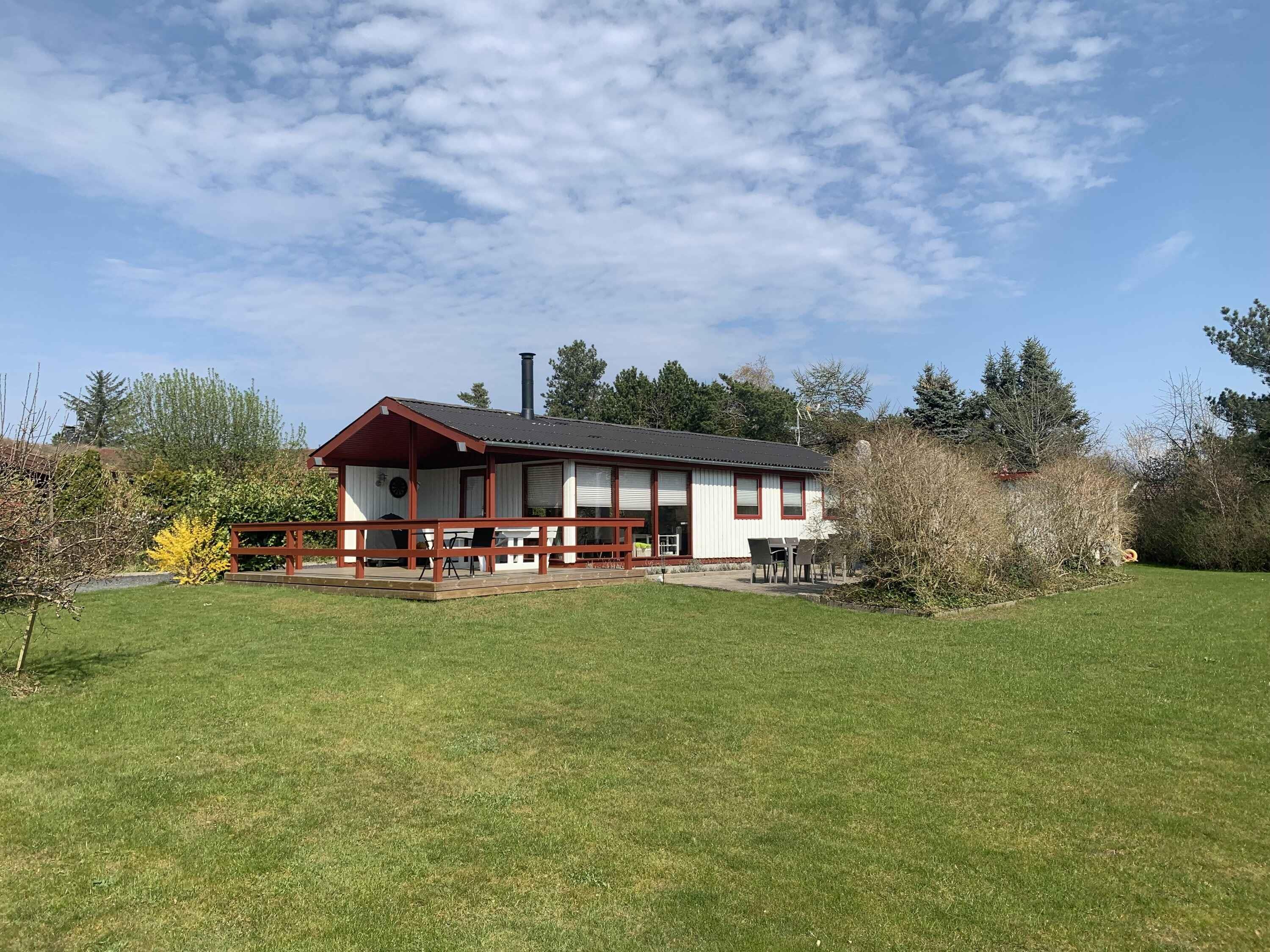Gemütliches Holzferienhaus mit drei Schlafzimmern und neuer Terrasse, nur wenige Schritte vom kinderfreundlichen Strand in Udsholt entfernt.