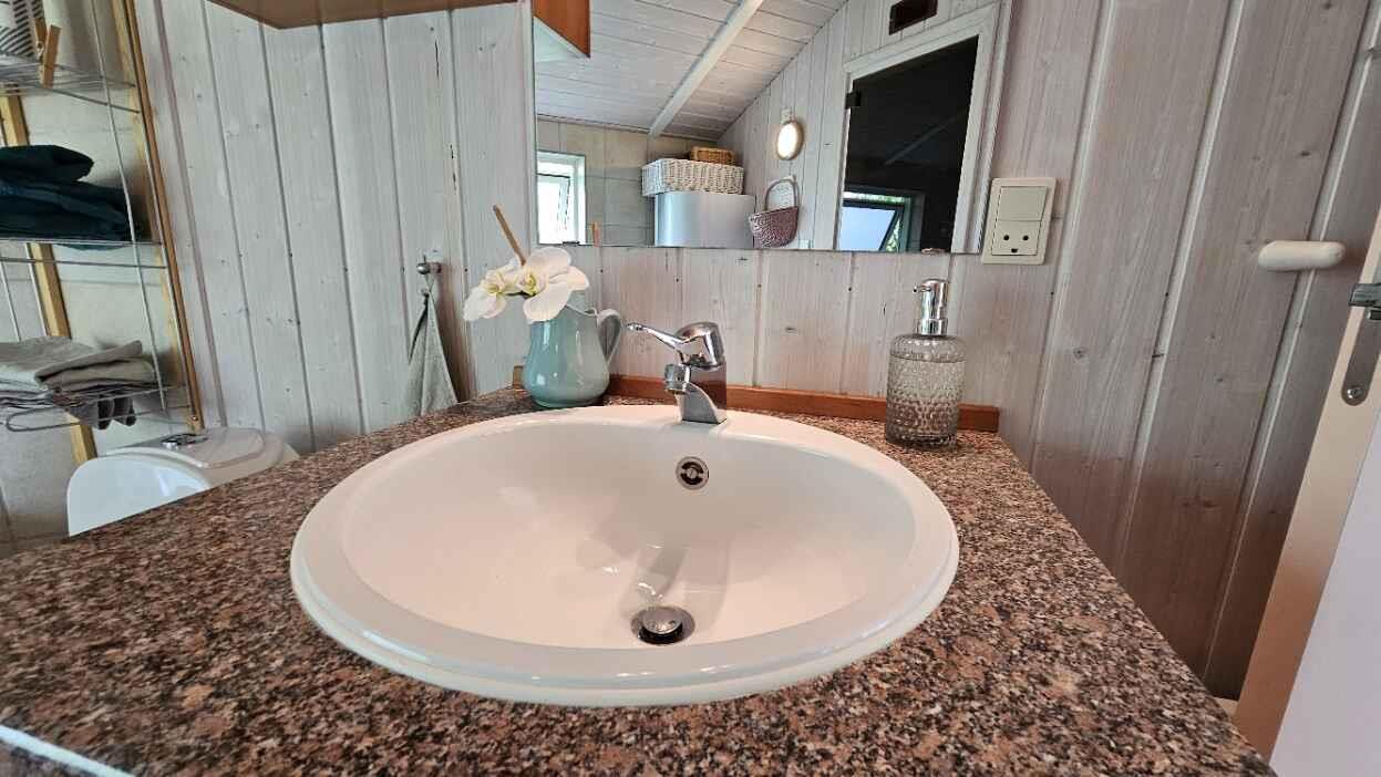 Dieses helle, stilvolle und gut geschnittene Ferienhaus aus dem Jahr 2006 mit 80 m² Wohnfläche eignet sich dank ganzjähriger Isolierung perfekt für Erholung und gemeinsames Beisammensein zu jeder Jahreszeit. Das Haus verfügt über einen großen Wohnbereich mit hoher Decke und beeindruckenden Fensterfronten, die für viel natürliches Licht sorgen. Die offene Küche schafft eine gemütliche Verbindung zum Wohnraum, während weiß lasierte Holzwände, helle Decken und Holzböden eine klassische Ferienhausatmosphäre vermitteln. Es gibt drei Schlafzimmer, die jeweils durch einen oder mehrere Räume/Wände voneinander getrennt sind, ein Badezimmer mit Whirlpool und Sauna sowie ein zusätzliches Gäste-WC – ideal für Familien und Gäste. Für aktive Urlauber stehen ein Fußballtor und Fahrräder zur Verfügung, sodass sich der Aufenthalt gut mit Bewegung und Spiel verbinden lässt. Im Außenbereich finden Sie sowohl eine süd-, ost- als auch westseitige Terrasse auf einem sonnigen und uneinsehbaren Grundstück mit pflegeleichtem Rasen, auf dem Sie die Sonne von morgens bis abends genießen können. Perfekt für alles – vom ruhigen Morgenkaffee bis zu gemütlichen Grillabenden. Ein Ferienhaus mit Komfort und Charme – bereit für viele schöne Urlaubserinnerungen. Hinweis: Haustiere und Feiern sind nicht erlaubt, und das Haus wird nicht an Handwerker vermietet. Achtung: Wird nicht für gewerbliche Nutzung vermietet.