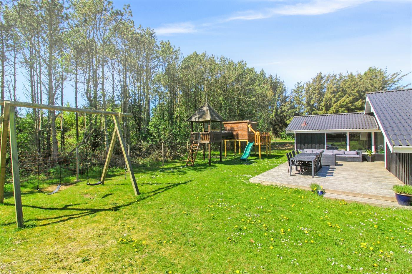 Die Ferienunterkunft liegt auf einem 1252 m² großen Naturgrundstück. Die Entfernung zum Meer beträgt 300 m. Die nächste Einkaufsmöglichkeit liegt 1800 m entfernt. Es steht ein 140 m² Terrassenareal zur Verfügung. Schaukel. Spielturm. Fußballtor. Parkplatz auf dem Grundstück.