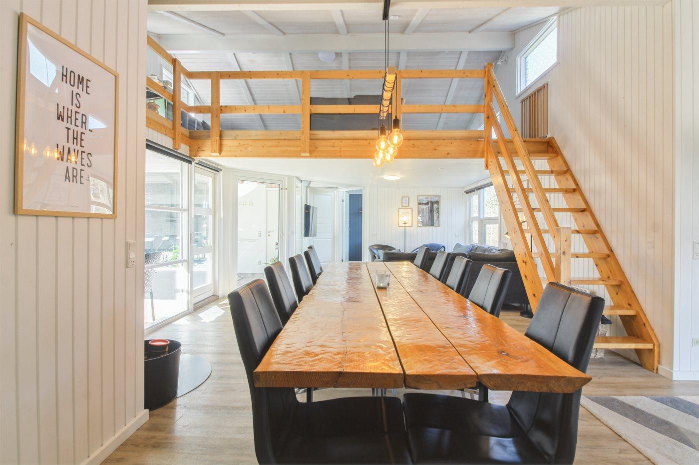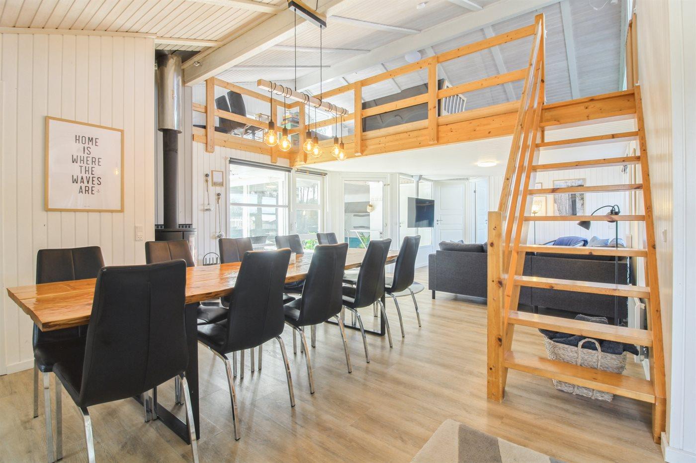 Das Ferienhaus eignet sich gut für 2 Familien oder eine große Familie. Das Haus hat zwei Wohnzimmer, eines davon grenzt an die Küche und das Esszimmer im Erdgeschoss an. Da das Sofa nicht genug Sitzplätze für alle hat, können sich die jüngeren Gäste ins offene Obergeschoss zurückziehen oder es sich in einem der Schlafzimmer gemütlich machen, die in der Nähe des Wohnzimmers liegen.