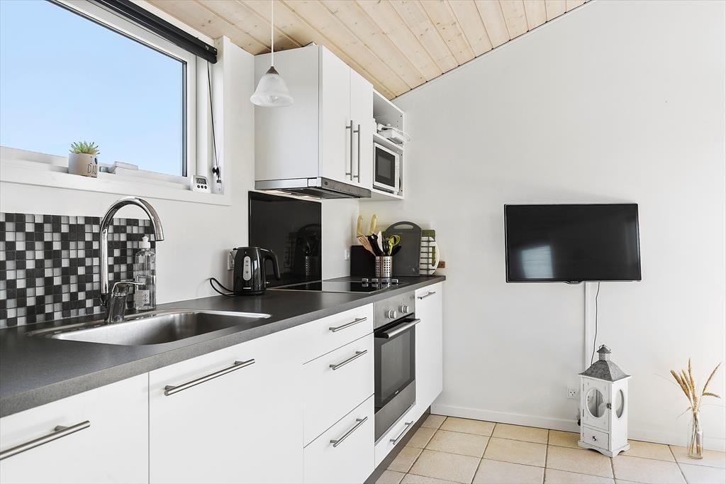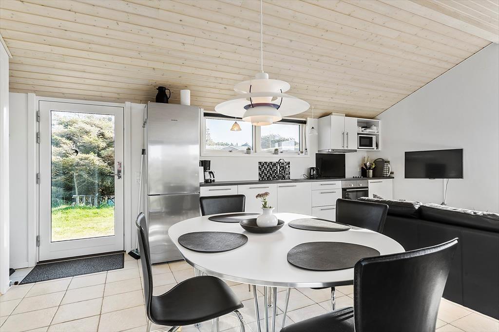 Das Ferienhaus wurde 2012 erbaut und umfasst 51 gut genutzte und durchdachte m². Das Haus ist mit einem großen zentralen Raum eingerichtet, der Wohnzimmer, Küche und Essbereich beinhaltet. Von hier gibt es drei Ausgänge zur umlaufenden Terrasse und zur schönen Natur. Es gibt zwei Schlafzimmer, die hintereinander liegen, und deshalb möchten wir darauf hinweisen, dass man, um ins Schlafzimmer des Hauses zu gelangen, durch das erste Zimmer gehen muss, in dem ein Einzelbett steht. Hier sind gute Haushaltsgeräte und Internet vorhanden, sodass alle Bedingungen für einen angenehmen Urlaub in Nordjütland ideal sind.