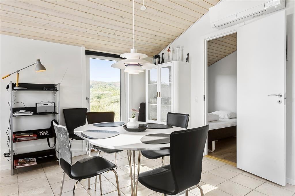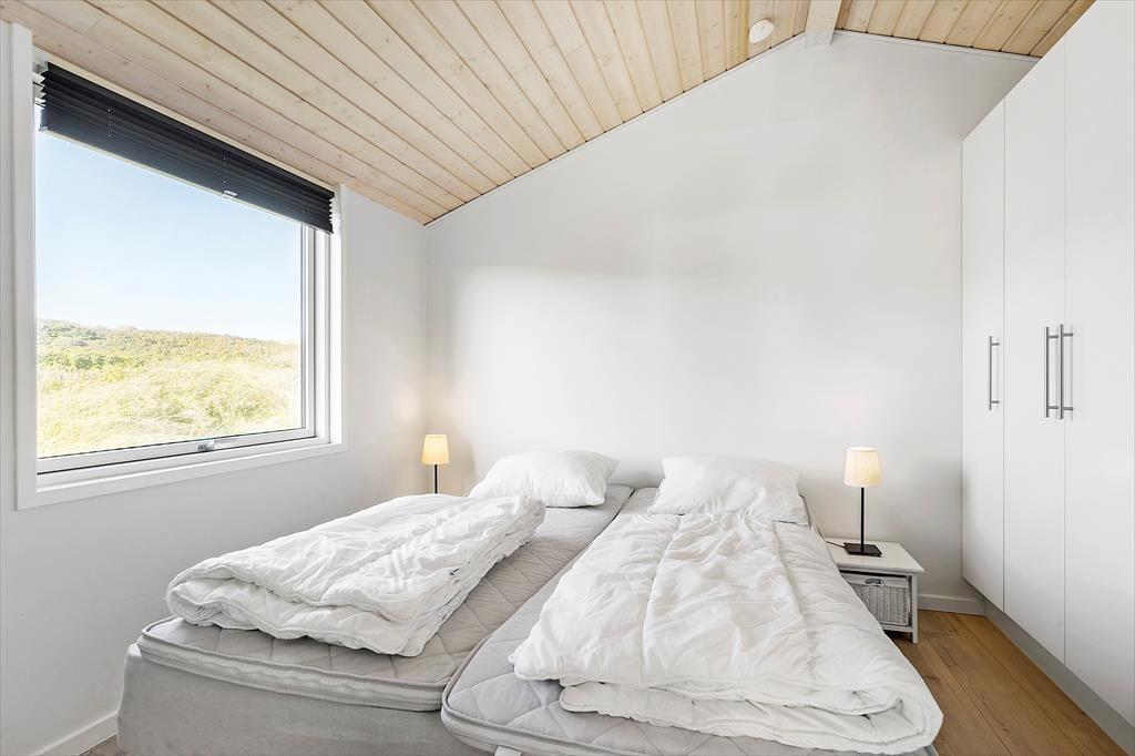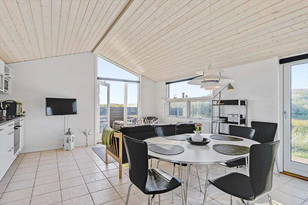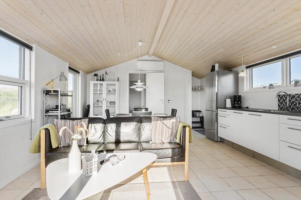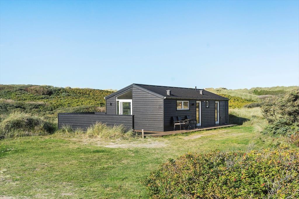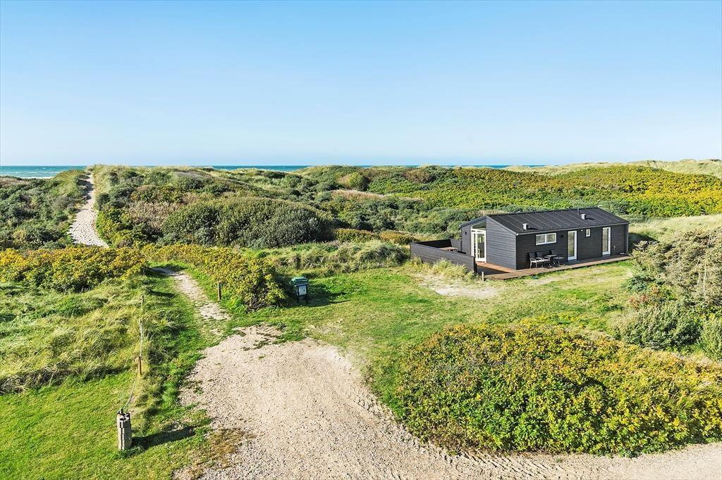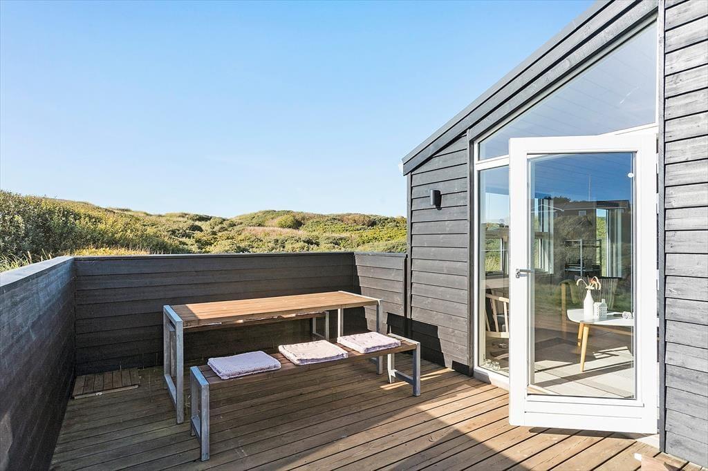 Das Haus liegt in der äußersten Dünenreihe, und von dem großen Naturgrundstück aus führt ein direkter Weg zum Meer, das nur 100 Meter entfernt ist. Die Terrasse ist nach Süden und Westen abgeschirmt, was vor dem frischen Wind schützt. Hier stehen Gartenmöbel, ein Grill und ein Sonnenschirm zur Verfügung, sodass man die dänischen Sommerabende richtig genießen kann.