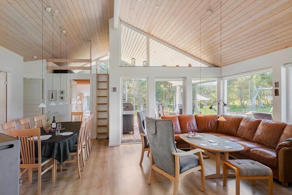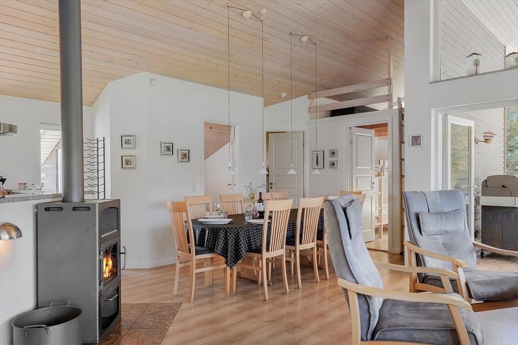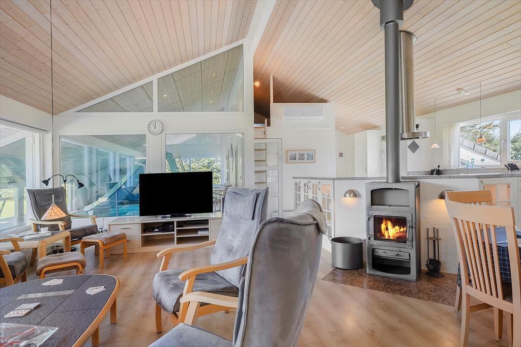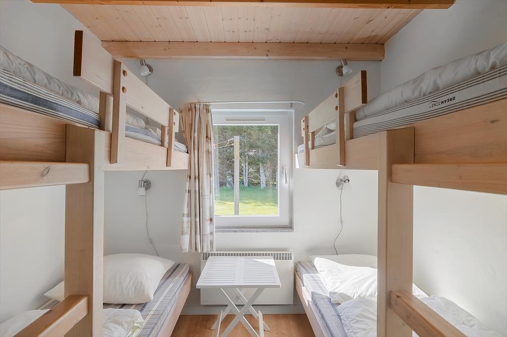 Das Ferienhaus bietet den perfekten Rahmen für einen schönen Urlaub, wenn man eine größere Familie ist, die sowohl drinnen als auch draußen viel Platz braucht. Mit vier Schlafzimmern und zwei Badezimmern können bis zu zehn Personen hier übernachten, und für die Kleinsten gibt es sowohl einen Stuhl als auch ein Bett. Die Einrichtung ist durchgehend hell und gemütlich, und alle Geräte und Möbel sind von guter Qualität. Küche, Essbereich und Wohnzimmer sind ein großes kombiniertes Zimmer, sodass man gemeinsam die meisten Aktivitäten wie Kochen, Brettspiele und gemütliches Fernsehen genießen kann. Außerdem gibt es kostenloses, drahtloses Internet – also bringen Sie gerne ein Tablet oder einen PC mit. In der Mitte des Ferienhauses befindet sich ein Kaminofen, der Wärme und Gemütlichkeit verbreitet und das Haus ganzjährig für Ferien geeignet macht.