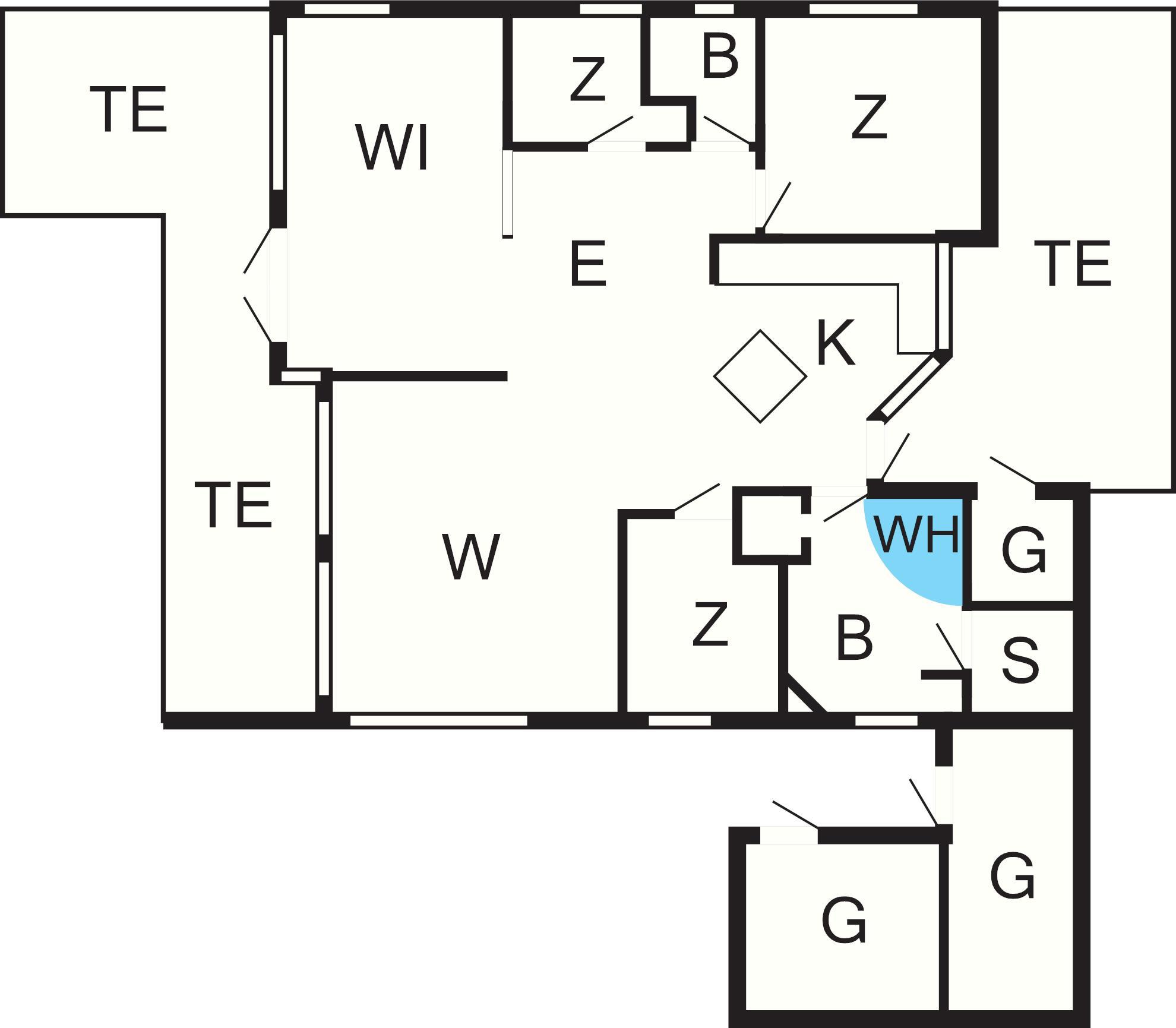 Bad: Waschm, Trockner, WC, Waschb., Dusche, Fußbodenheiz.