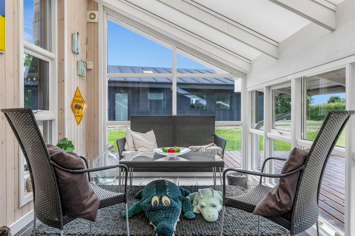 Gemütliches Ferienhaus mit Wintergarten, Sauna und nah am kinderfreundlichen Strand von Grønninghoved.