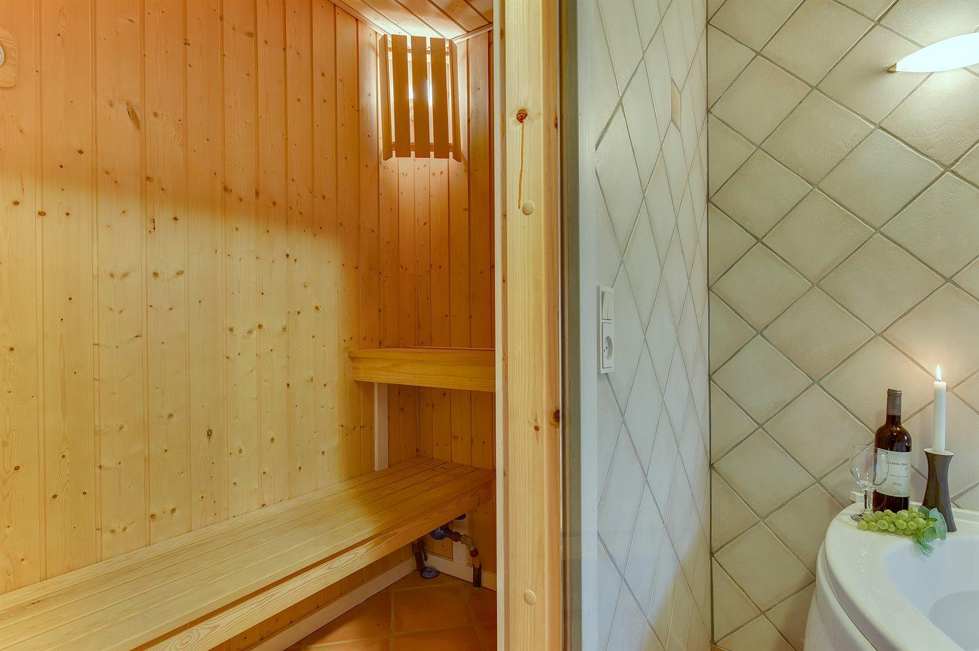 Es gibt 2 Badezimmer mit Duschnische und 2 Toiletten. Fußbodenheizung in 2 Badezimmern. Multifunktionsdusche. Es steht eine Sauna zur Verfügung in der Sie sich so richtig entspannen können.