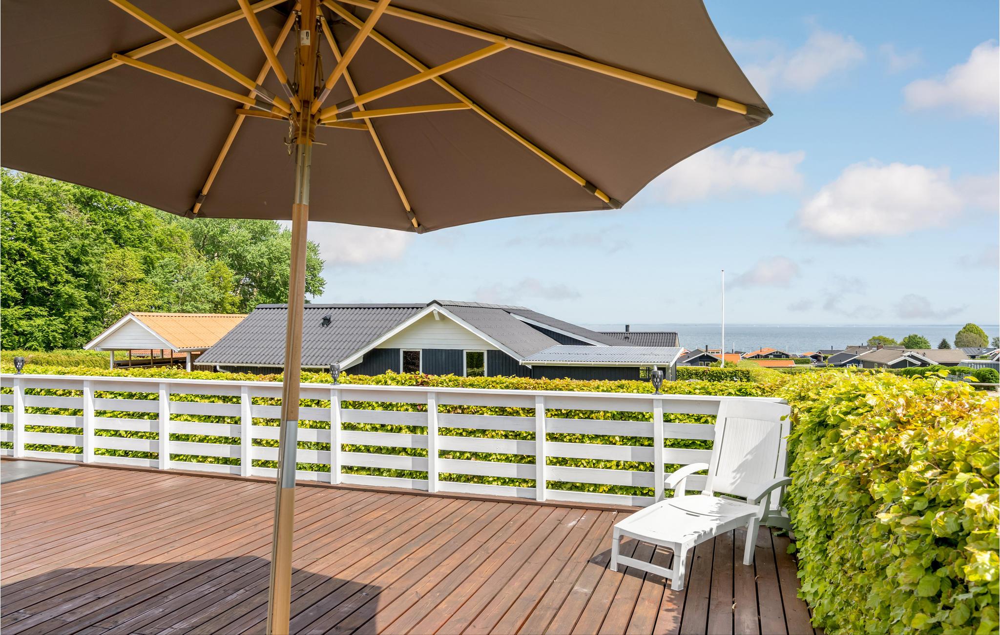 Dieses schöne, neuere Holzhaus liegt auf einem angelegten Gartengrundstück, umstanden von Bäumen. Das Haus ist gut ausgestattet mit moderner Küche und Badezimmer sowie hübschen, komfortablen Möbeln. Es liegt in einem abwechslungsreichen und hügeligen Gebiet. Von der Terrasse und dem Wohnraum aus haben Sie eine herrliche Panoramaaussicht auf den Kleinen Belt bis nach Fünen. Das Haus liegt in einem grossen, neuen Ferienhausgebiet.