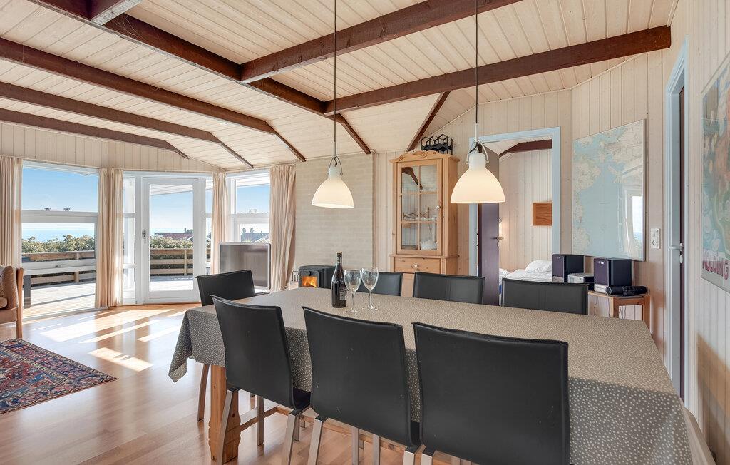 Schöne Ferienhaus in erhöhter Lage bei Grønningehoved. Die Lage ermöglicht eine fantastische Aussicht auf den Kleinen Belt vom Wohnbereich und der Terrasse. Die Einrichtung ist freundlich hell und es gibt einen Wohnraum. eine Küche, drei Schlafzimmer und einen Alkoven mit zwei Schlafplätzen. Die Terrasse ist teilweeise überdacht.