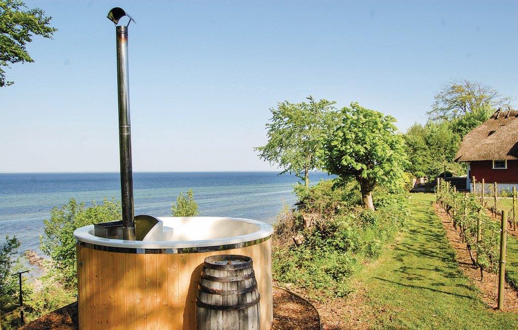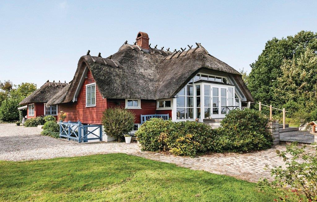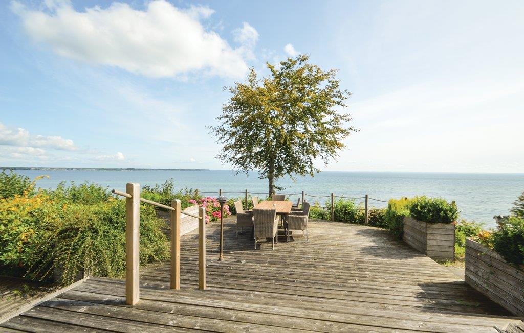 Ferienhaus in einzigartiger Lage auf einem 14.000 m² Grundstück und eigenem Strandstück, wie es selten in Dänemark zu finden ist.Das strohgedeckte Haus ist umgeben von Terrassen, die viele Aktivitäten im Freien ermöglichen, an den sonnigen Tagen genau wie an lauen Sommerabenden. Auf dem Grundstück befinden sich u.a. ein eigener Gartenteich und eine Orangerie, wo Sie sich bis spät im Jahr draußen aufhalten können, im hinteren Teil des Gartens befinden sich Weintrauben. Von den Terassen, dem Garten und aus dem Inneren des Hauses haben Sie einen herrlichen Blick auf den Kleinen Belt. Gehen Sie herunter zum Strand, der direkt unter dem Haus liegt, und genießen Sie das Strandleben ungestört und ohne massenweise andere Strandbesucher. Innen ist das Haus hell und freundlich eingerichtet, vom Eingangsbereich führen drei Treppenstufen zu den zwei großen Wohnzimmern, von denen das eine eine offene Kombination mit der Küche bildet. Vom einen Wohnzimmer gelangen Sie auf eine große Terasse mit verschiedenen Ebenen, auf der Sie den Urlaub und den Blick auf das Wasser genießen können. Neben einer Gästetoilette gibt es im Haus auch ein großes Badezimemr mit Whirlpool, wo schmerzende Muskeln mit einer Wassermassage behandelt werden können. Mit seinem Wald, den Feldern und Strand ist das Grønninghoved-Gebiet der ideale Urlaubsort für Familien mit Kindern. Zur nächsten größeren Stadt, Kolding, sind es nur wenige Minuten Fahrzeit. Hier können Sie in der Einjaufsstraße oder auch im Einkaufscenter Kolding Storcenter ausgezeichnet einkaufen. Sie finden hier ebenfalls das Schloss Koldinghus, das wirklich einen Besuch wert ist. Grønninghoved Strand wurde schon oft als Dänemarks kinderfreundlichster Strand ausgezeichnet und damit ideal für Familien mit Kindern geeignet, die hier einen Urlaub mit viel Badespaß verleben können.