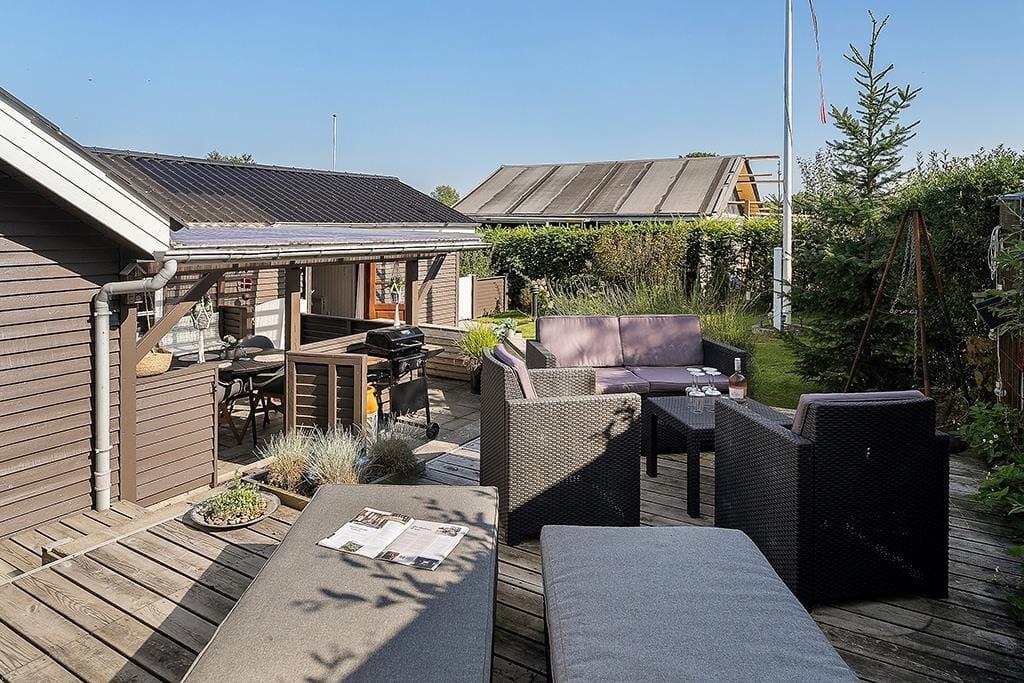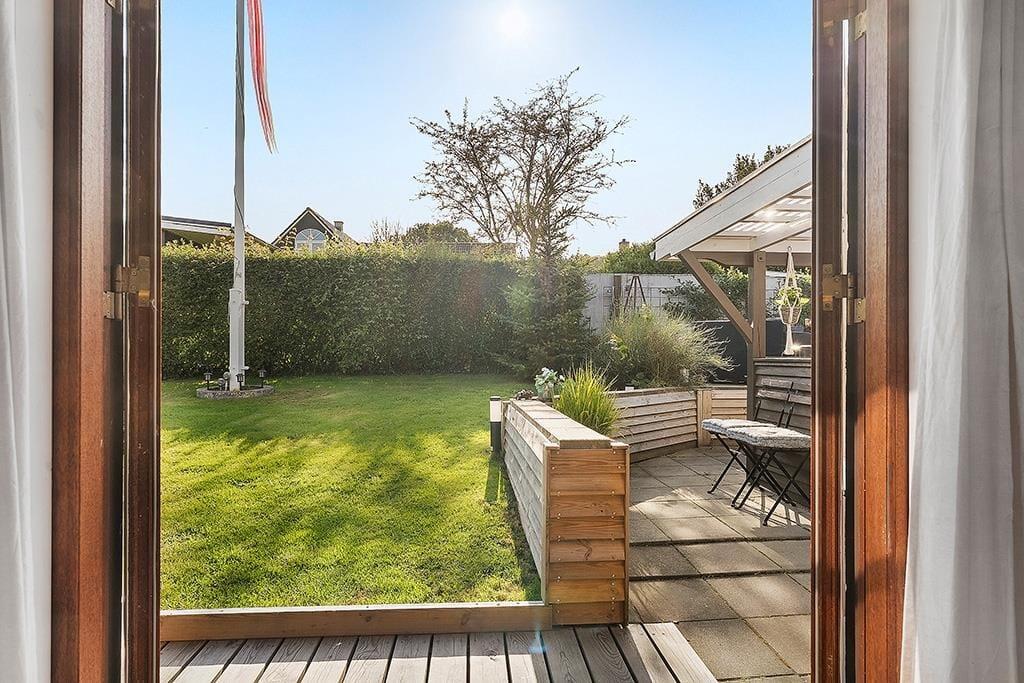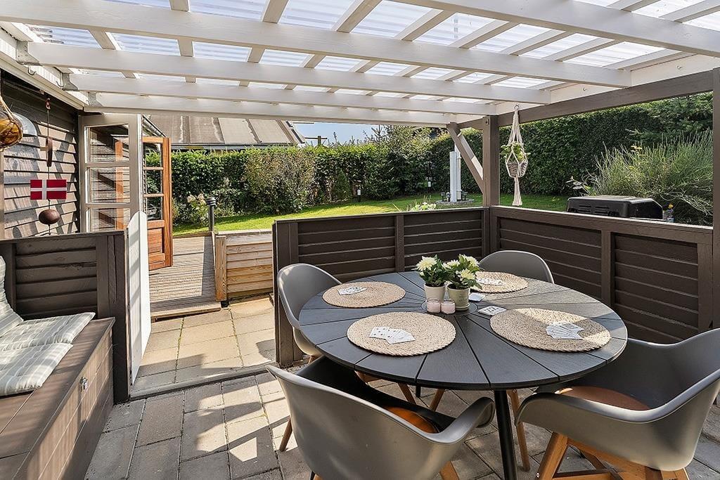 Der Garten rund ums Ferienhaus ist eingezäunt und liebevoll angelegt – ein grünes Refugium voller Ruhe und Privatsphäre. Kinder und Erwachsene können sich hier sicher bewegen und kleine, geschützte Ecken zum Entspannen oder Spielen entdecken. Die teilweise überdachte Terrasse verlängert das Leben im Freien und ermöglicht es Ihnen, Kaffee oder Abendessen unter freiem Himmel zu genießen – ganz gleich, wie das Wetter ist. Holen Sie die Gartenmöbel heraus, heizen Sie den Grill an und lassen Sie das Urlaubsgefühl einkehren, während Sie die Sonne im Gesicht spüren und dem Vogelgezwitscher aus dem nahen Wald lauschen. Wenn es dunkel wird, kuscheln Sie sich mit einem Glas Wein unter eine Decke und genießen den stillen Abend – vielleicht mit einem guten Buch oder einfach der wohltuenden Ruhe. Der Garten eignet sich perfekt für lange Sommertage ebenso wie für ruhige Herbstmorgen mit Tau im Gras und dampfendem Kaffee.