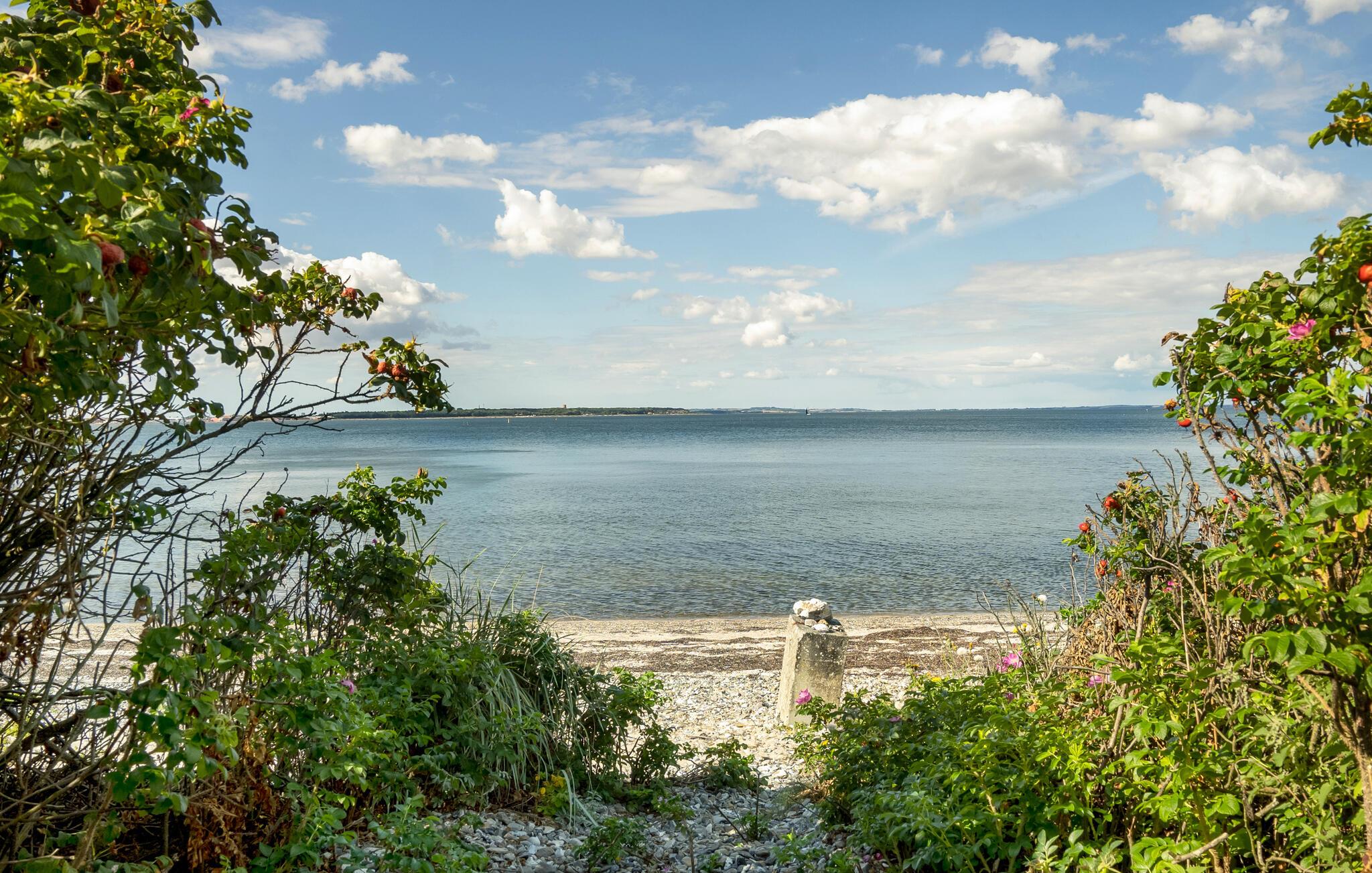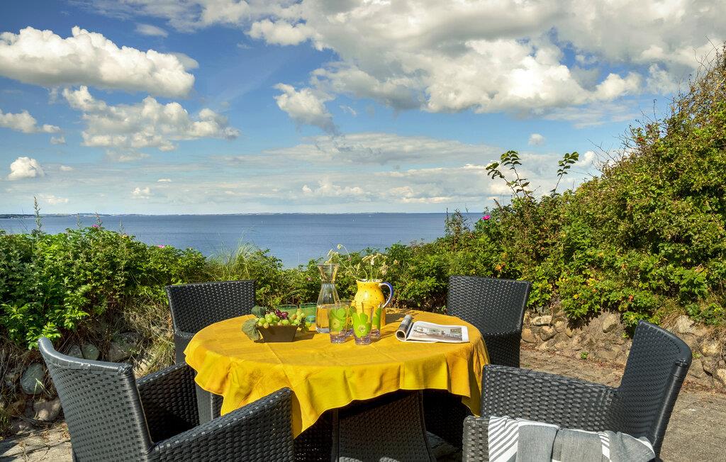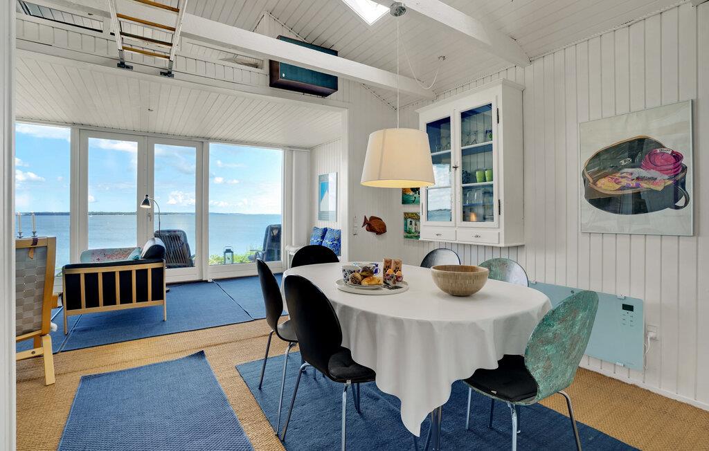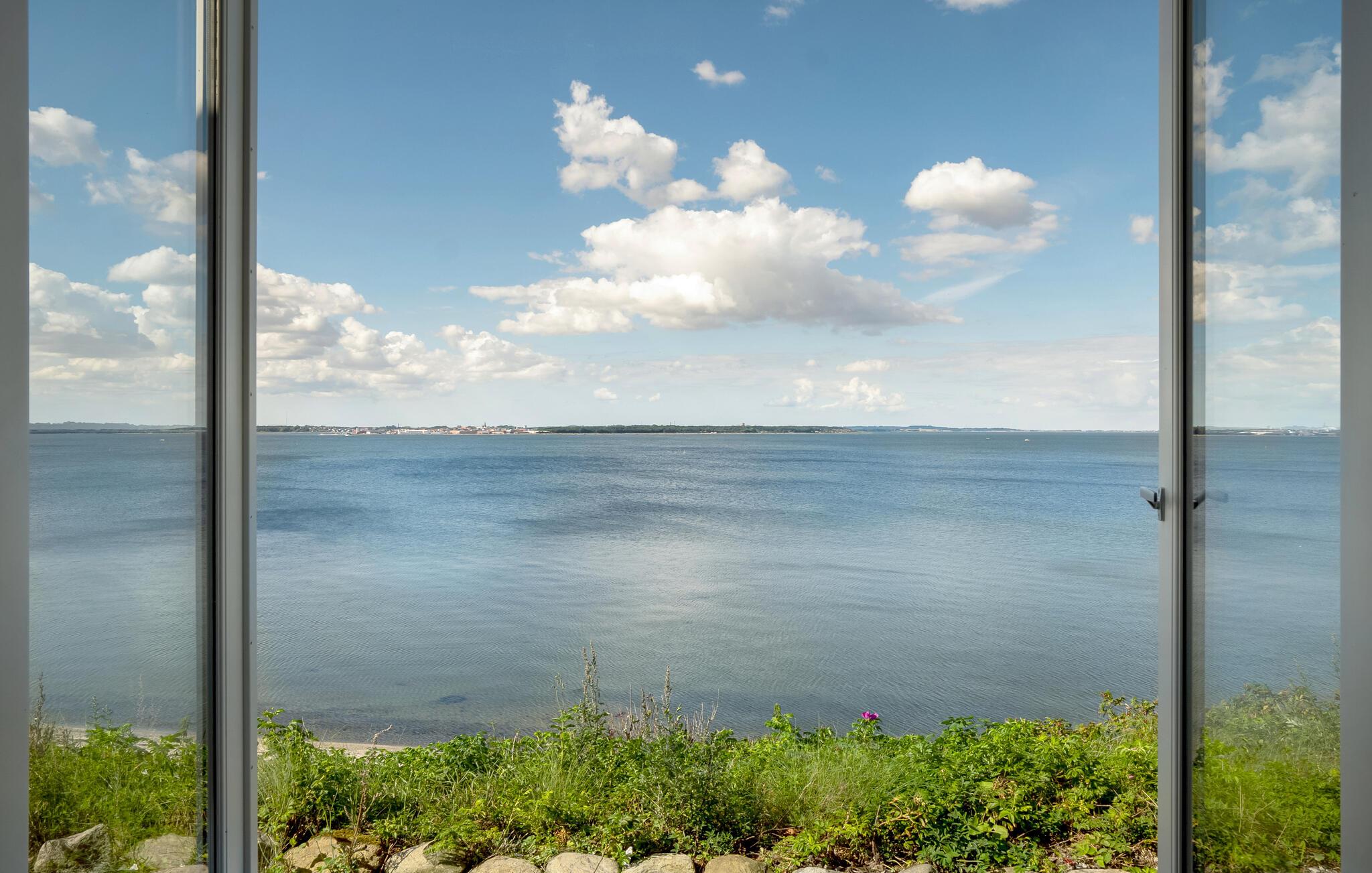 Gemütliches Ferienhaus mit Panoramablick über den Limfjord und direktem Zugang zum Strand in Roslev, Dänemark.