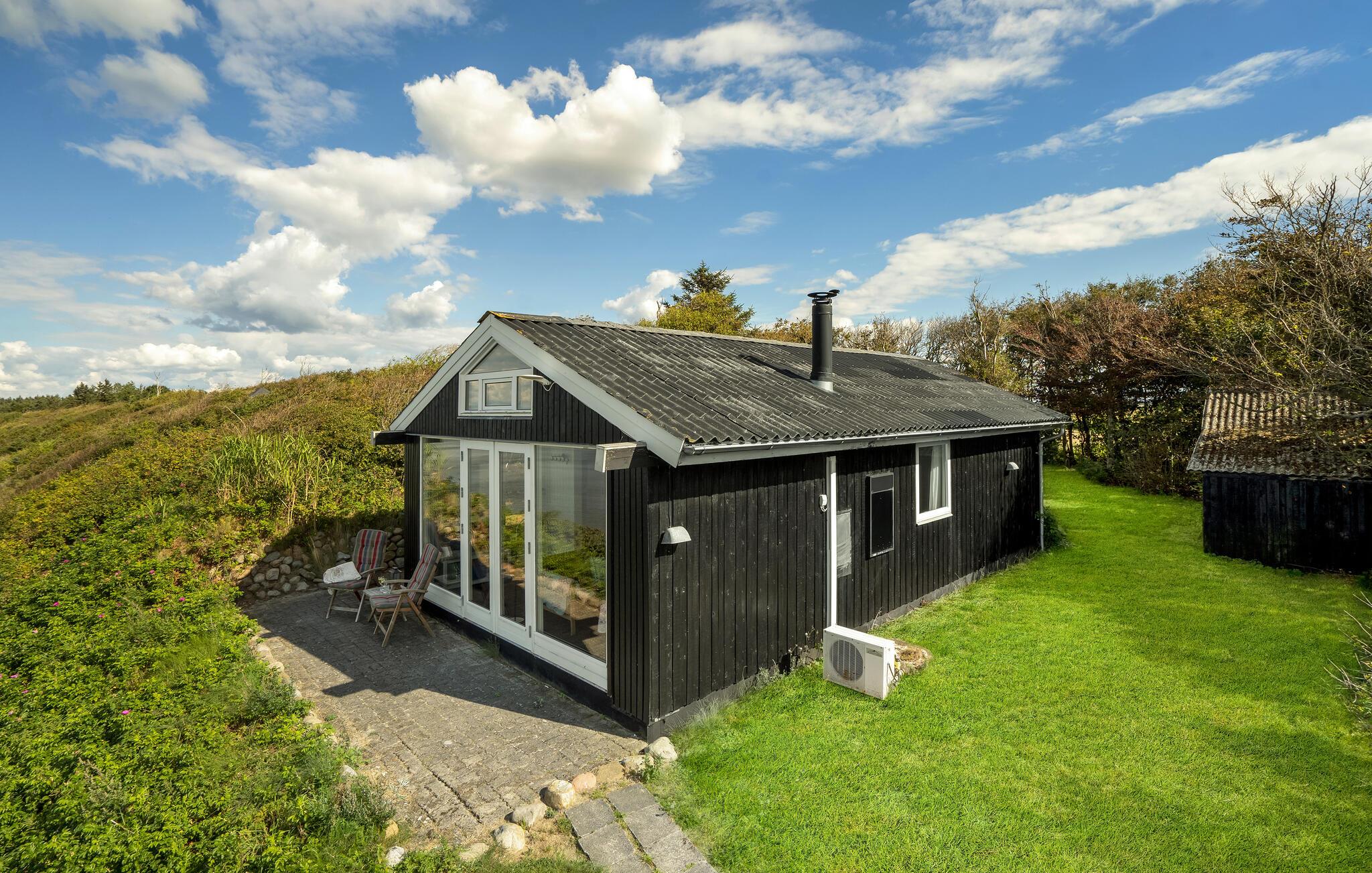 Oberhalb des Strandes thront dieses gemütliche Ferienhaus mit wunderbarem Blick über den Limfjord.