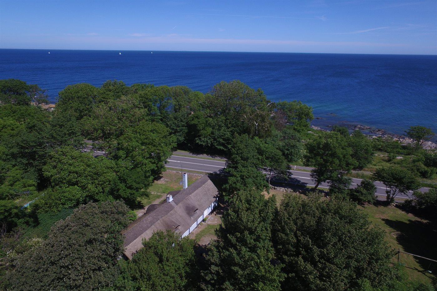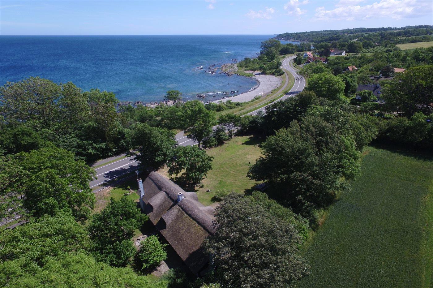 Dieses reetgedeckte Fachwerkhaus aus dem Jahr 1728 bietet Meerblick, modernen Komfort und ein großes Grundstück nahe Gudhjem.