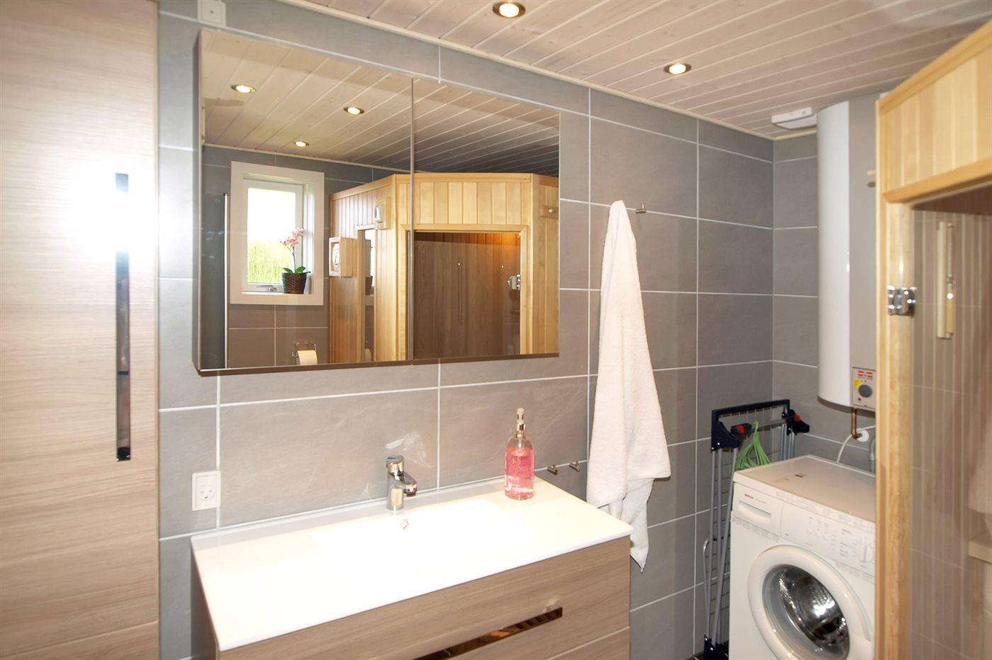 Das Badezimmer wurde 2016 modernisiert und bietet eine Duschnische, Fußbodenheizung, Waschmaschine sowie eine schöne Sauna mit Meerblick an.