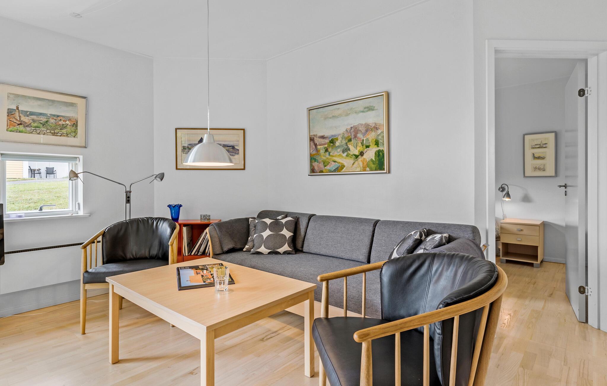 Helle Ferienwohnung in Gudhjem mit Meerblick, zwei Terrassen und moderner Ausstattung für entspannte Urlaubstage.
