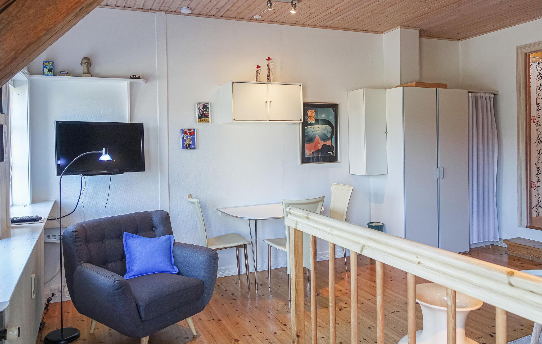 Im Außenbereich erwartet Sie eine nach Osten ausgerichtete Holzterrasse mit Loungemöbeln und Grill. Sie wohnen in einer gemütlichen Stadtwohnung in zentraler Lage in Gudhjem und nur 800 Meter von einem schönen Sandstrand entfernt.